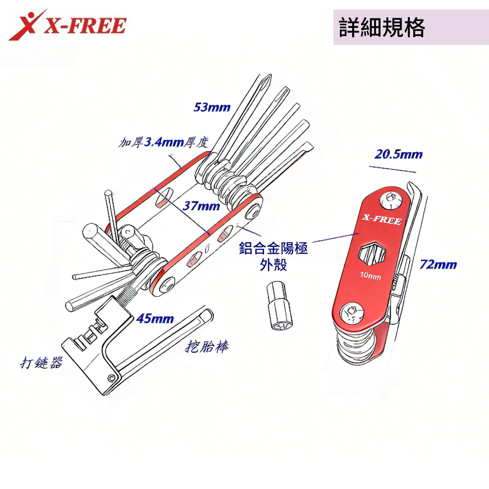 品名:X-FREE CR-V隨身攜帶式15功能折疊工具