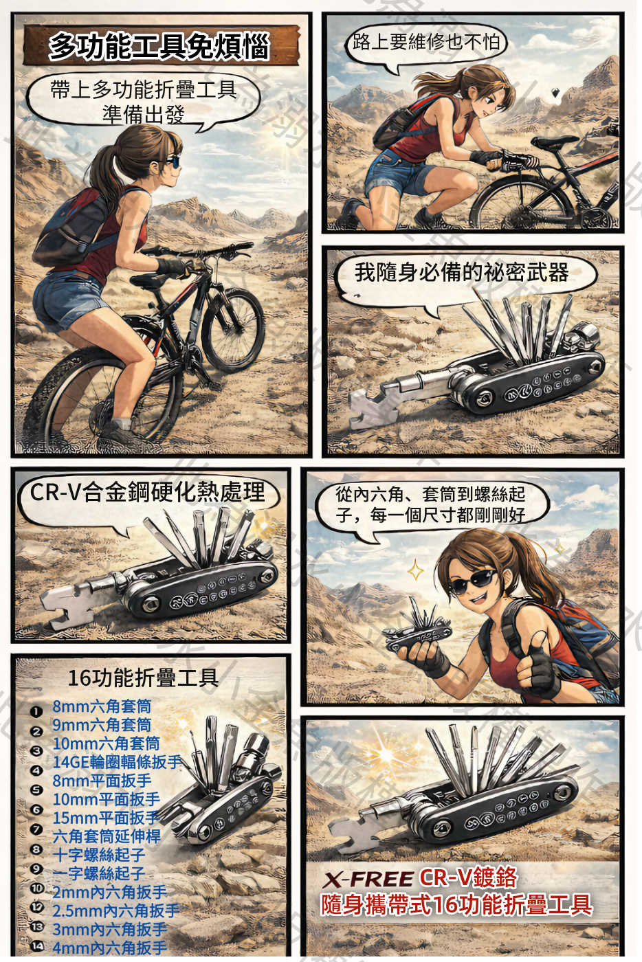 小秀從隨身包拿出這把 X-FREE 16 功能折疊修車工具,一展開就應付各種需求。