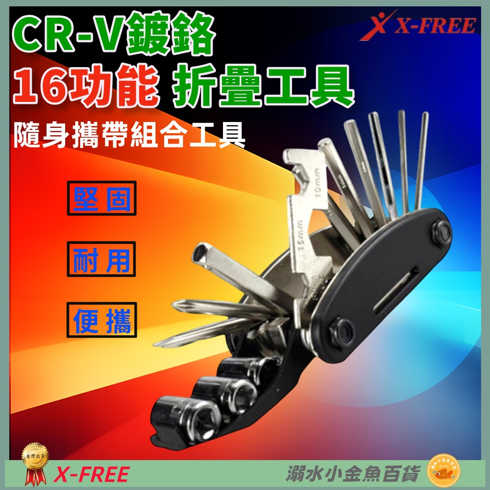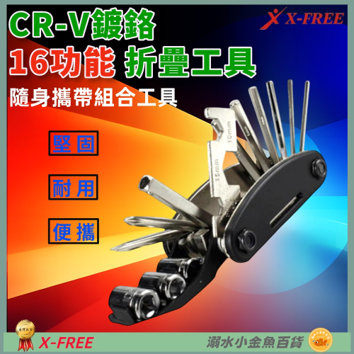 品名:X-FREE CR-V鍍鉻隨身攜帶式16功能折疊工具
