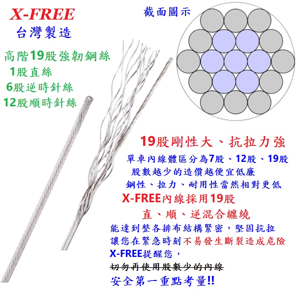 品名:台灣製造X-FREE 白鐵奈米雙頭煞車線