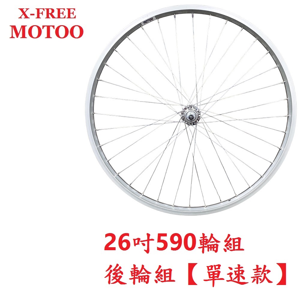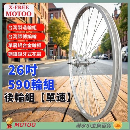 26"單層鋁合金輪框 + 36孔鋼鐵鎖牙式花鼓