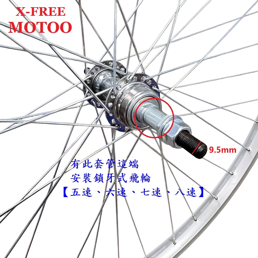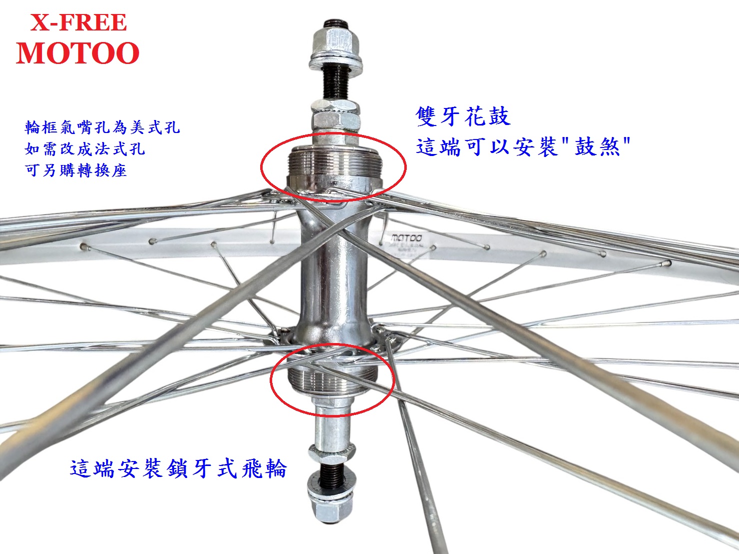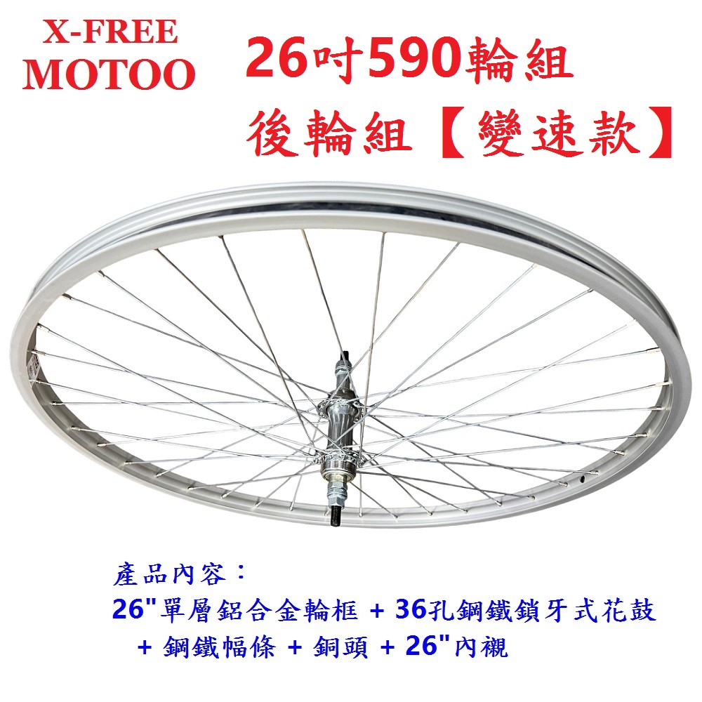 26"單層鋁合金輪框 + 36孔鋼鐵鎖牙式花鼓