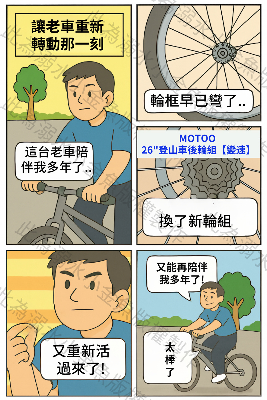 直到他換上 MOTOO 26 吋淑女車後輪組
