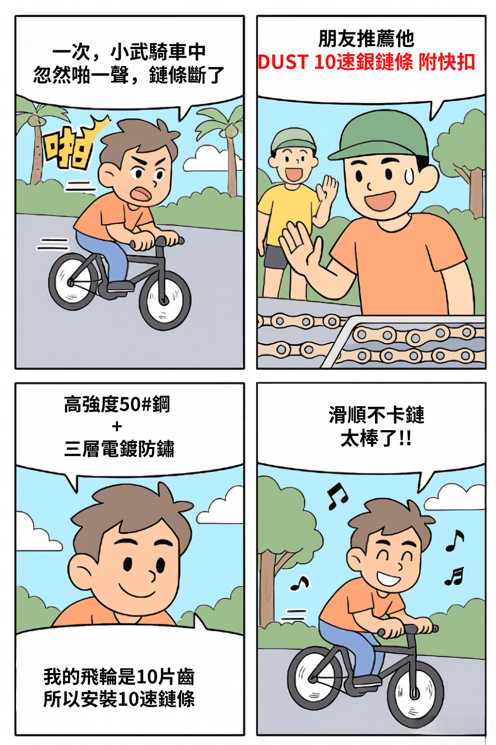 後來他換上 DUST 10速銀鏈條,還附快扣,裝上去穩得跟鋼鐵一樣。