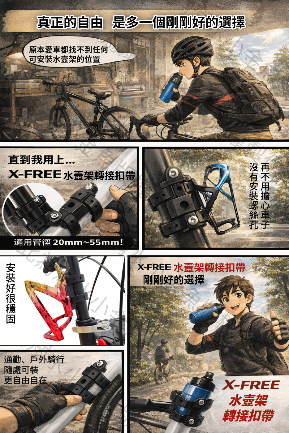 直到他裝上 X-FREE 水壺架轉接扣帶,一切都變得不一樣了。