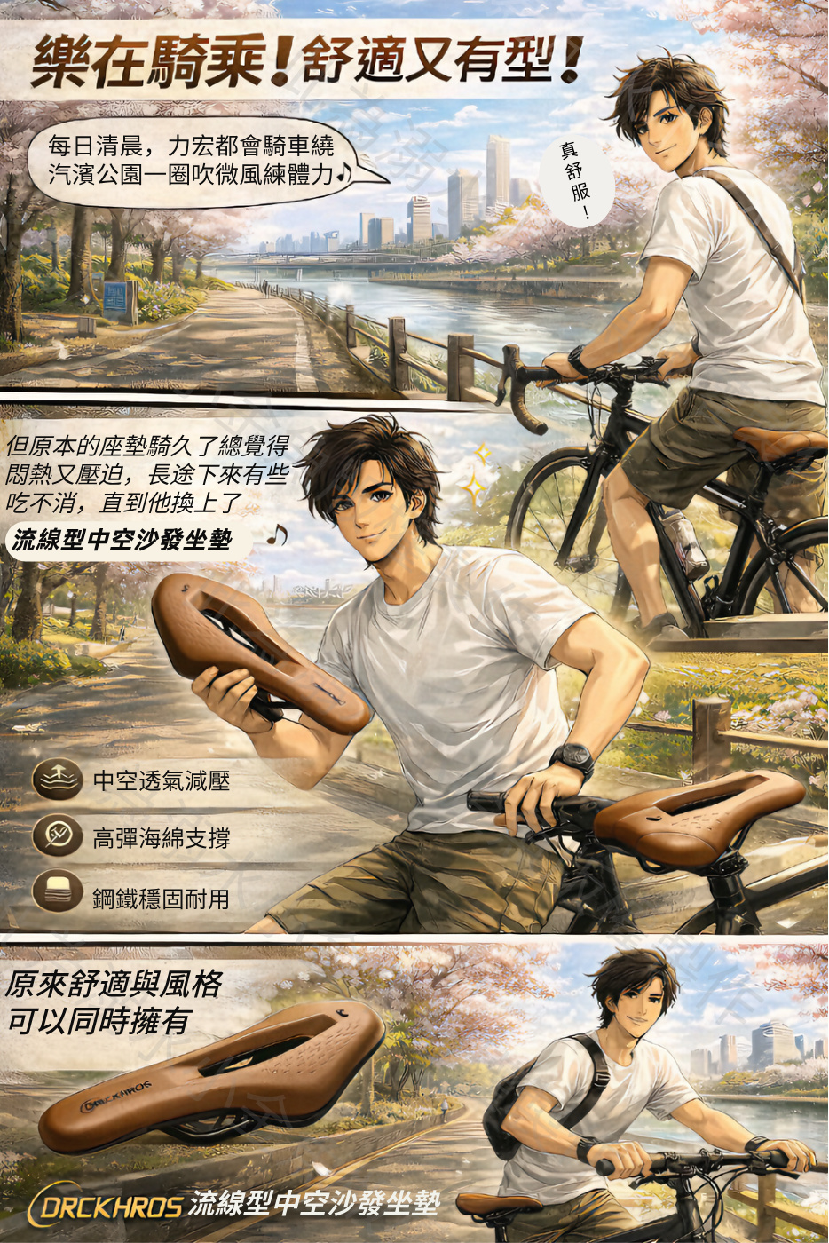 直到他換上 DRCKHROS流線型中空沙發坐墊,整趟騎乘體驗瞬間升級。