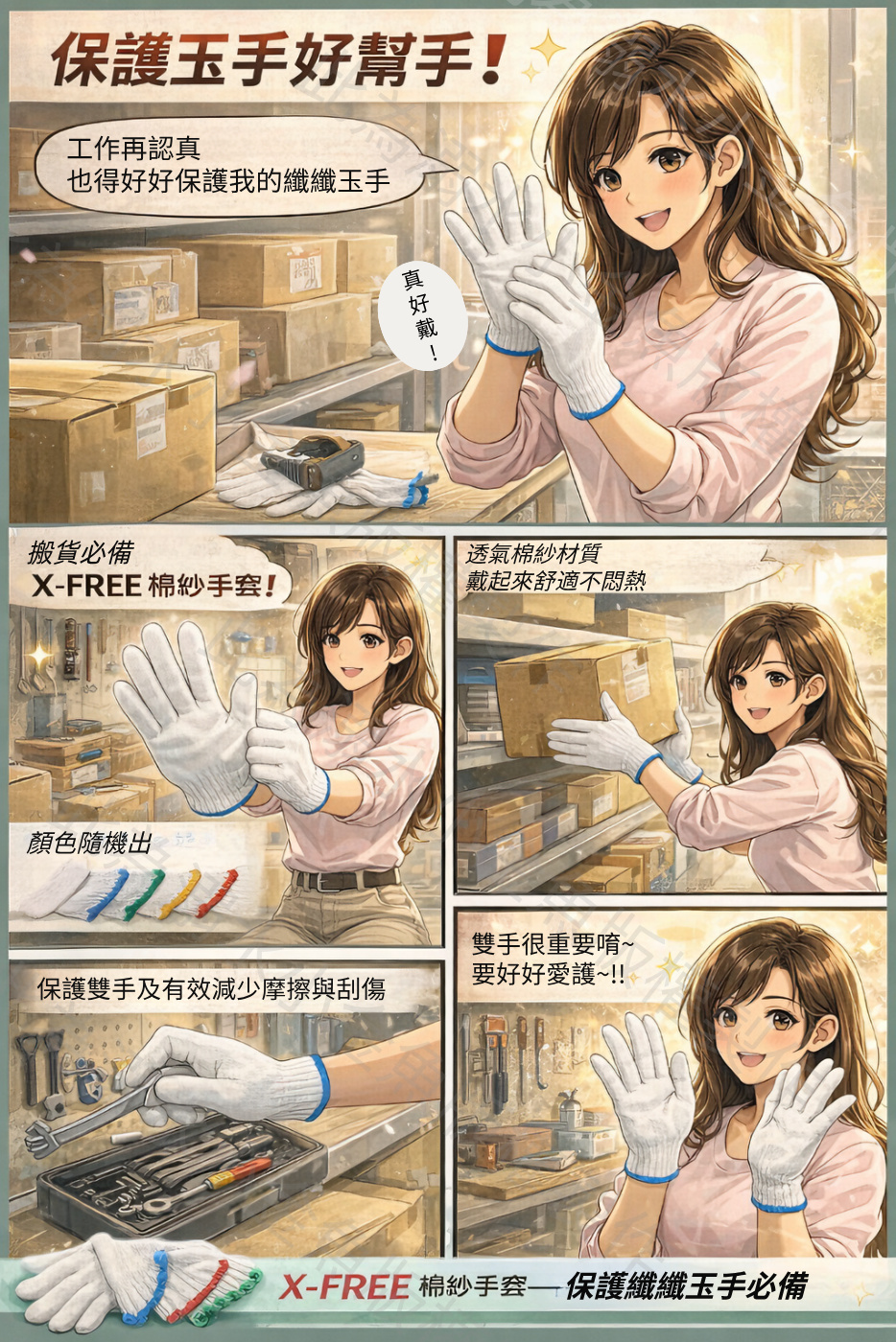 後來她戴上 X-FREE棉紗手套,從此多了一層溫柔的守護。