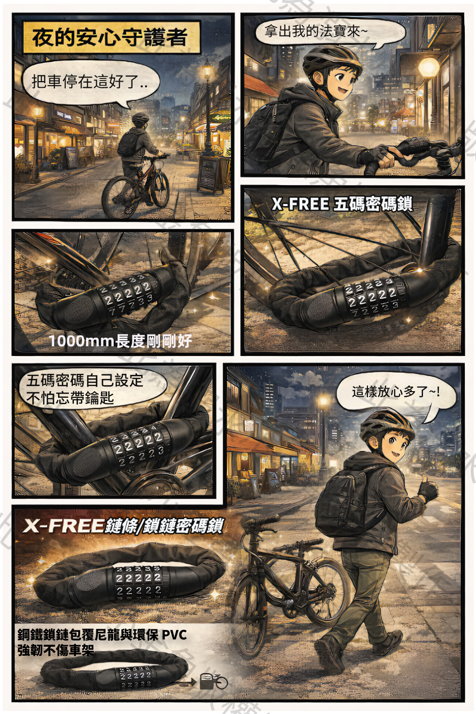 輕輕一扣,X-FREE 五碼自設密碼鏈條鎖牢牢守住他的安心。