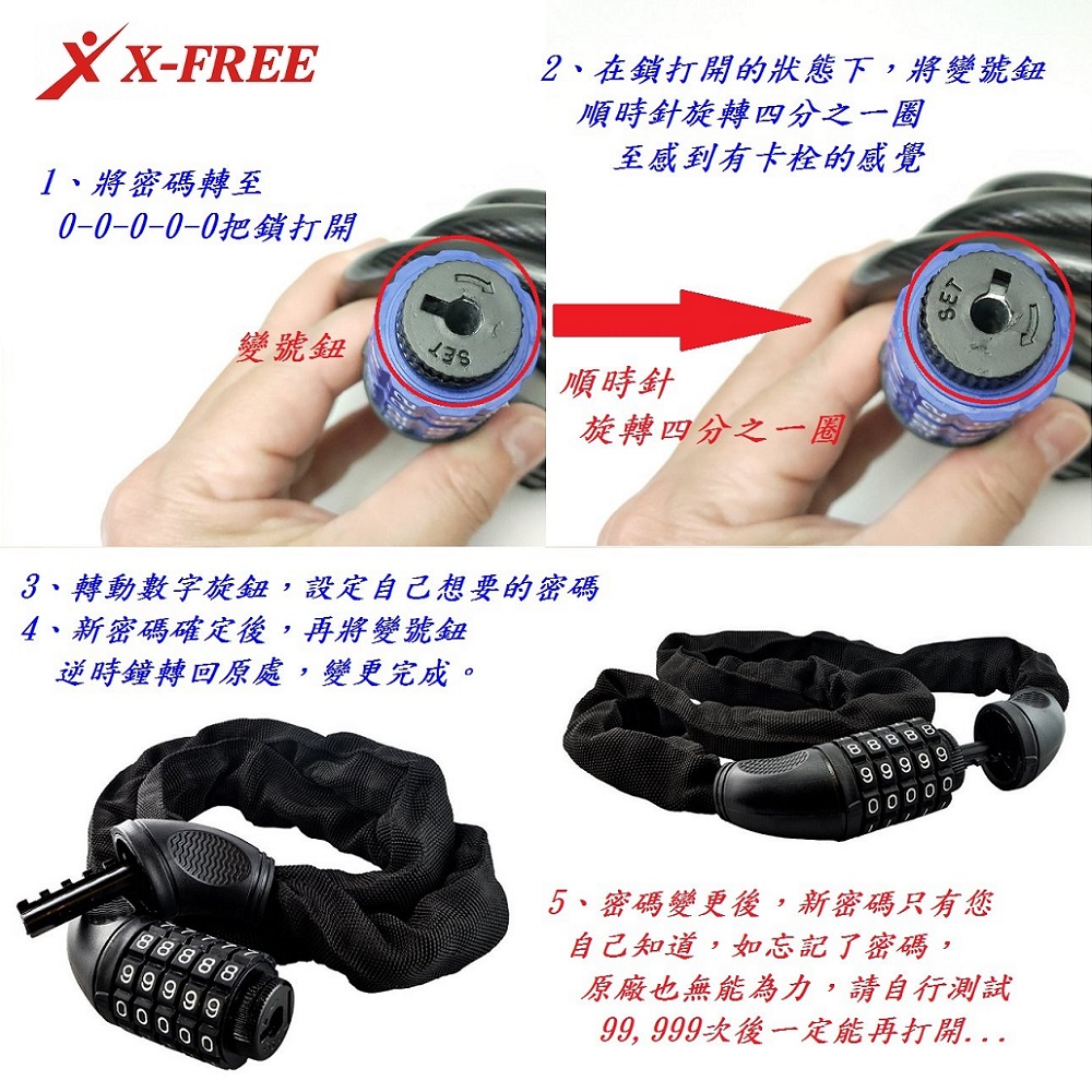 品名:X-FREE鏈條/鎖鏈自設密碼鎖【五碼】