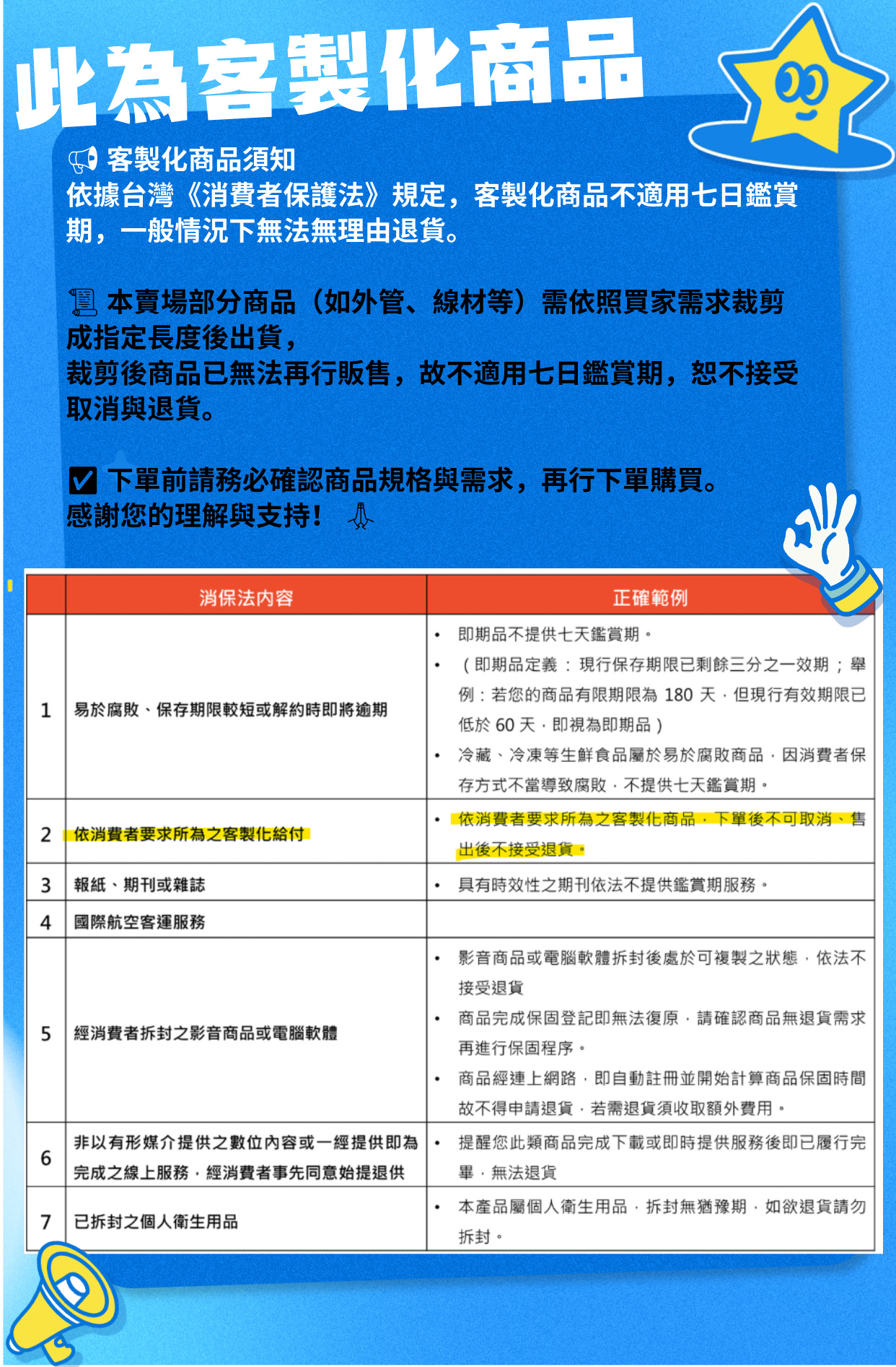 溫馨提醒: 1、本賣場滿100元整(不含運)才出貨喔~謝謝! 2、本賣場在鳥松發貨 3、需求大量可先詢問客服確認
