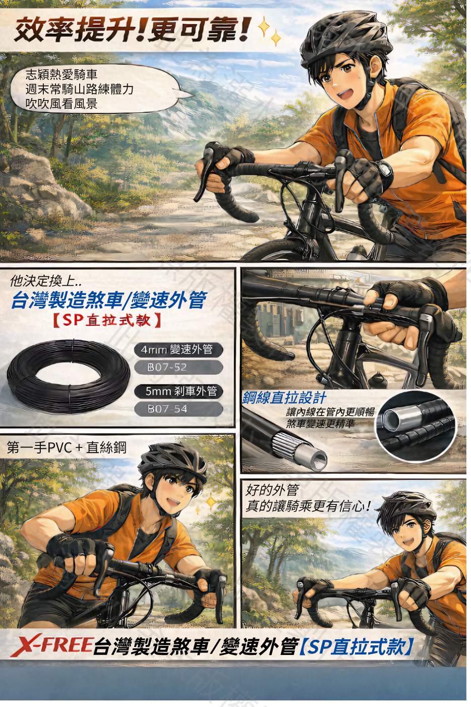 品名:X-FREE台灣製造煞車/變速外管【SP直拉式款】