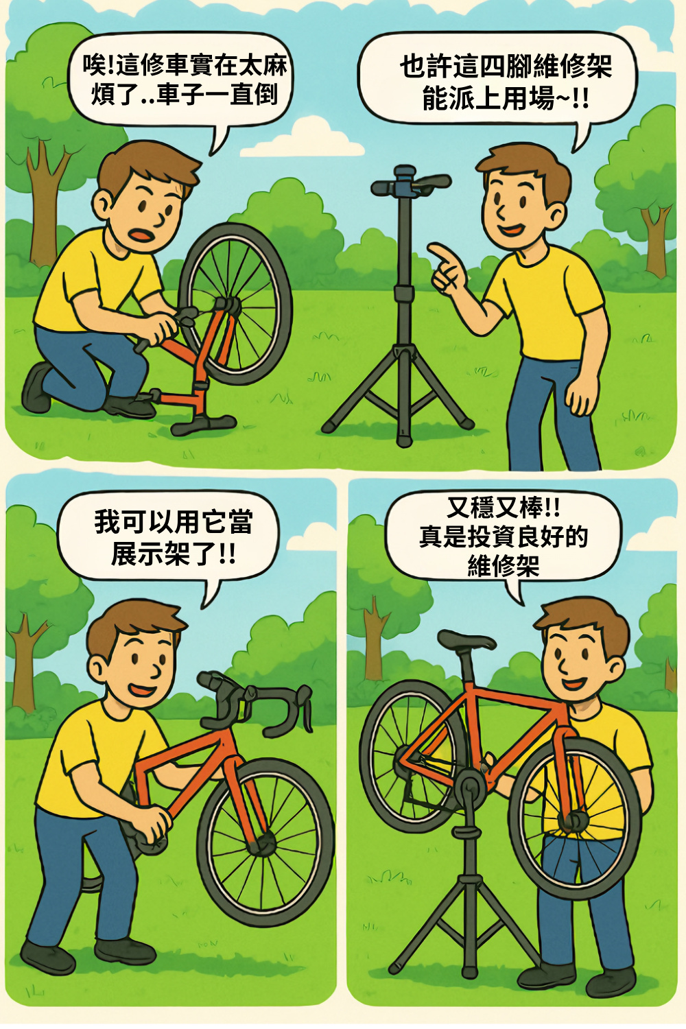 小明笑著說:「兩個都有,因為它不只是維修架,還能當展覽架!」