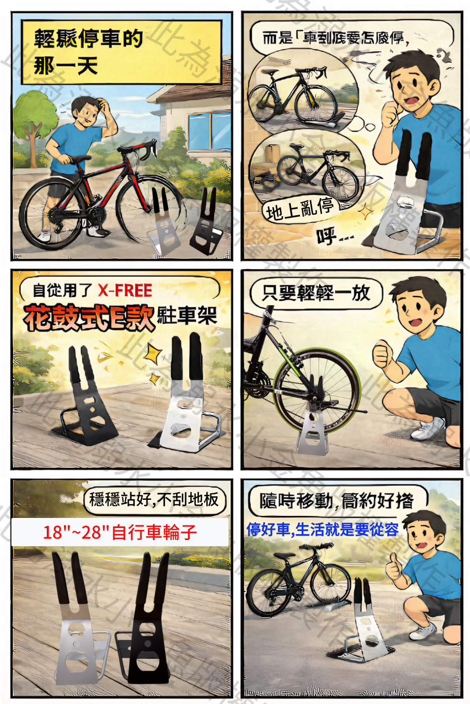 自從用了 X-FREE【花鼓式E款】駐車架,這個問題就消失了。