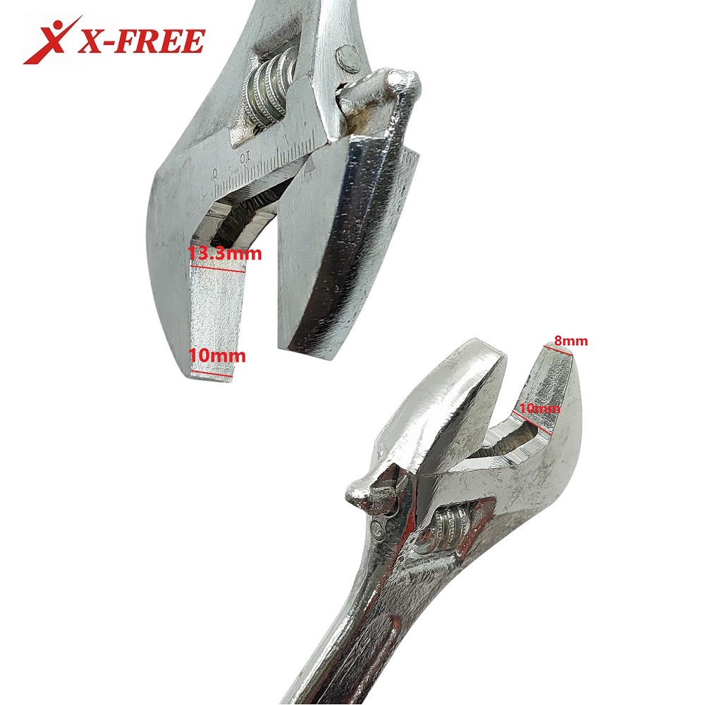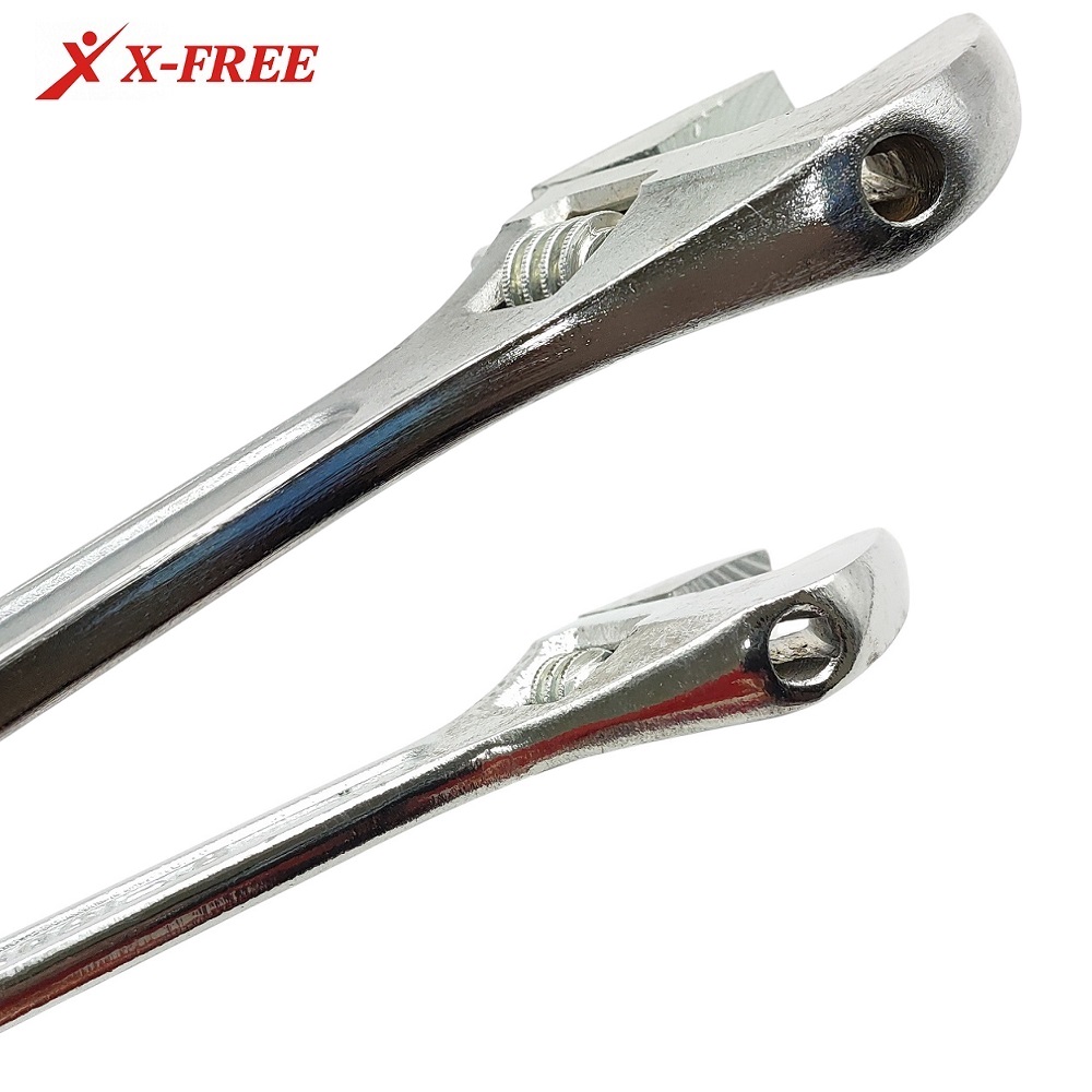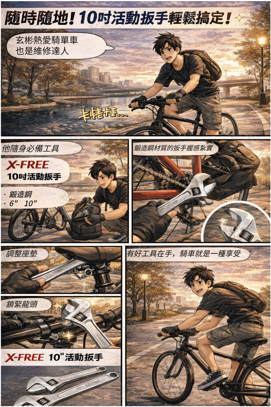 他從工具袋中拿出 X-FREE 10"活動扳手,穩穩地調整螺帽與零件。
