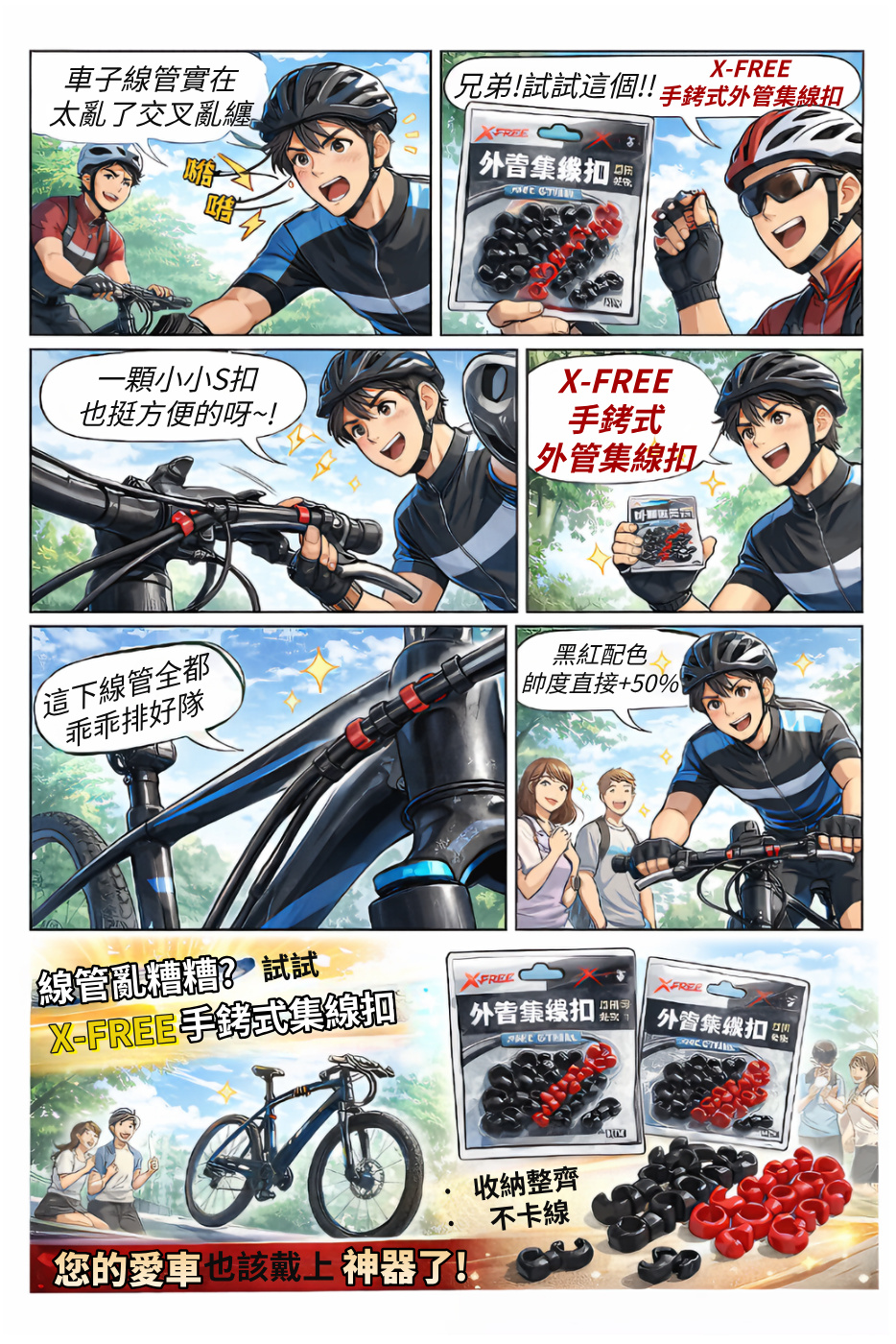 某天朋友丟給他一個神秘小物:「試試這個【X-FREE手銬式外管集線扣】。」