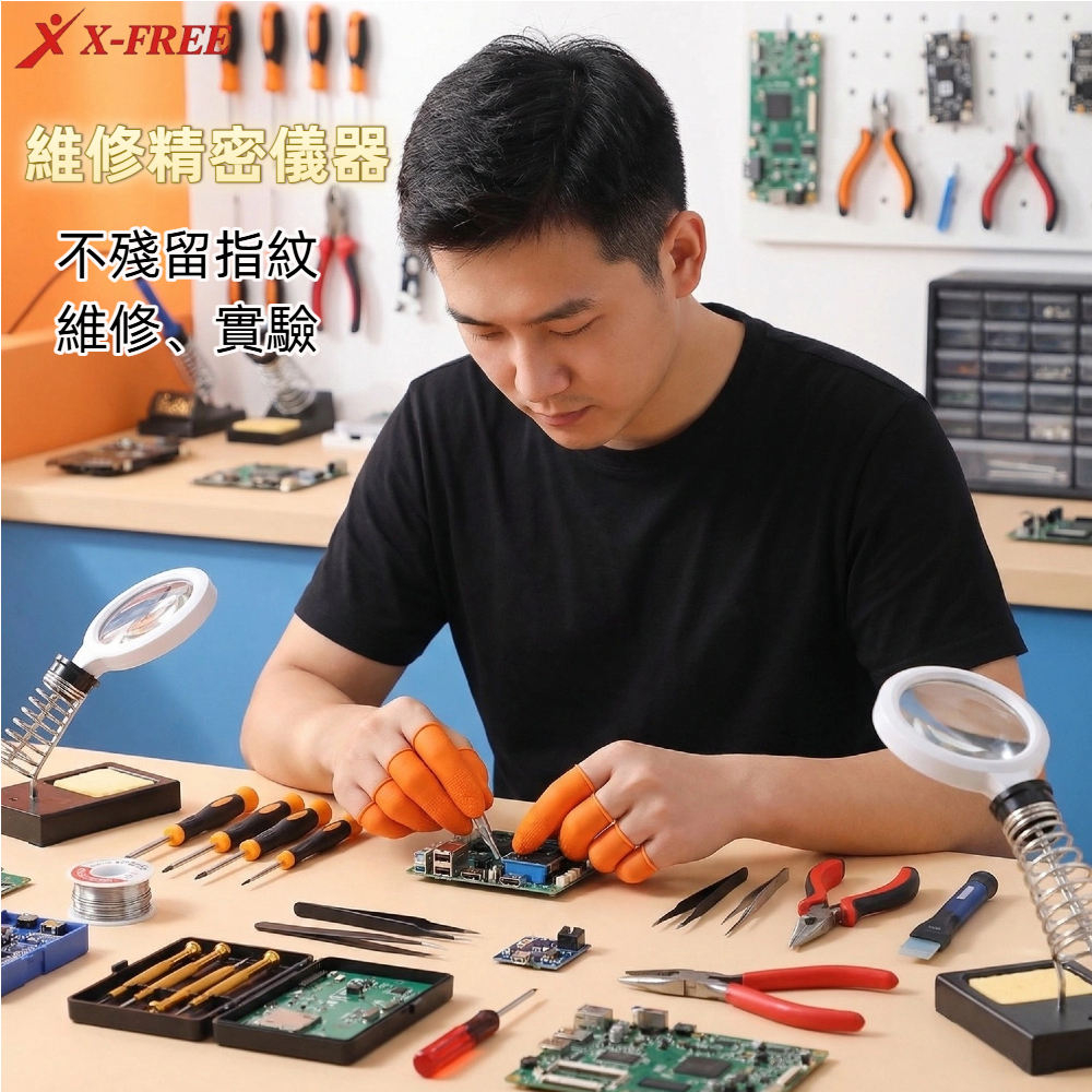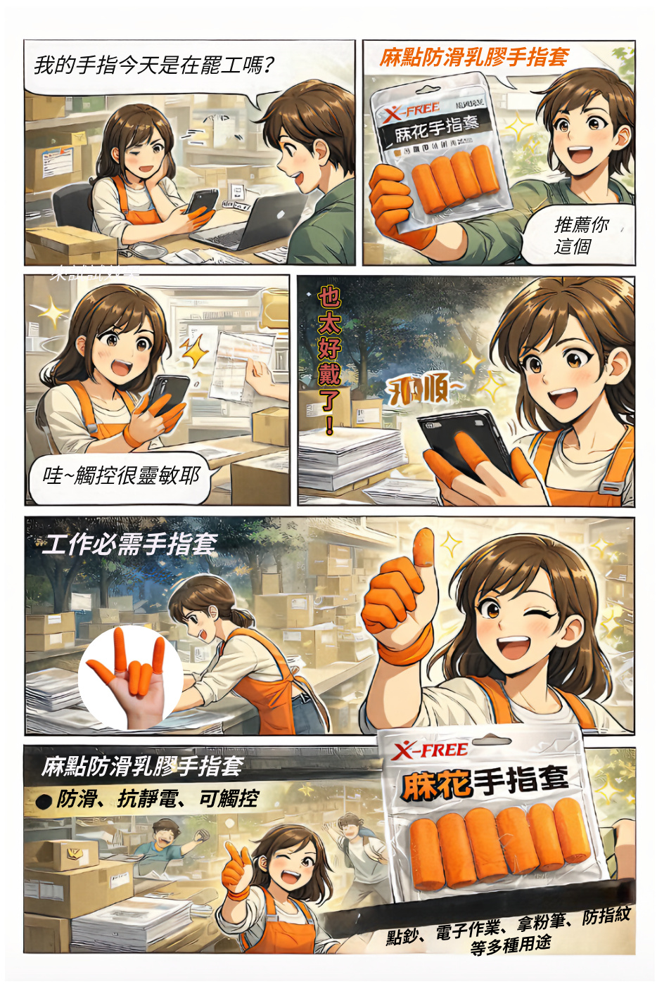 同事笑著遞給她一包【可觸控 防靜電 麻點防滑乳膠手指套】:「戴上這個,效率直接翻倍。」