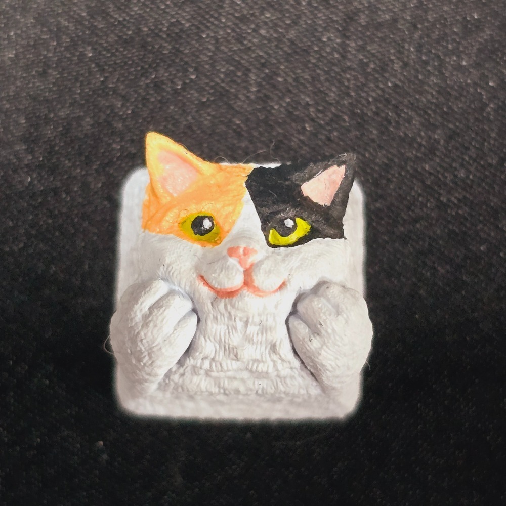 - 🐾 托著臉的三色貓手工鍵帽 🐾