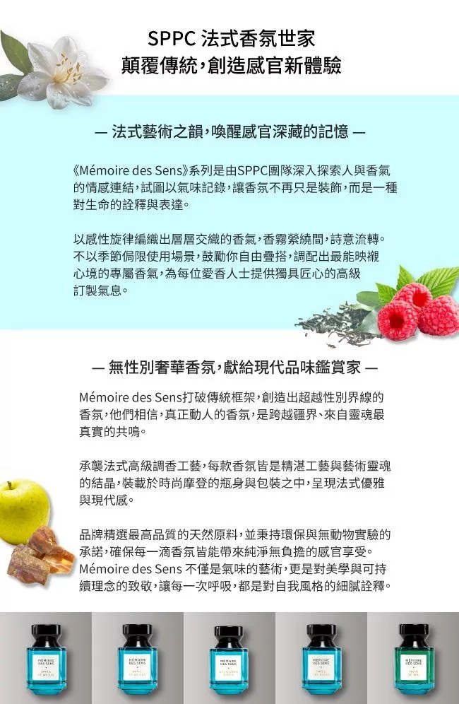 輕盈、鮮活、不受拘束。最後沉入麝香與雪松的木質尾韻