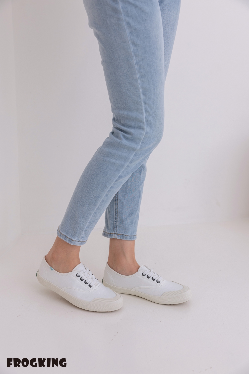 ⚪ 透氣帆布 + 止滑耐磨橡膠底