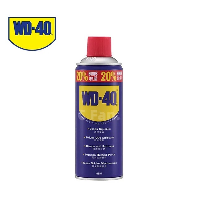 •潤滑:WD-40的潤滑成份均勻廣佈,並牢牢附著在可轉動的零件上。