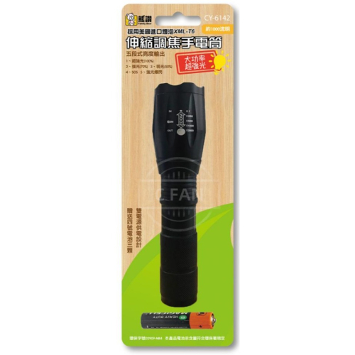 五段式亮度輸出:超強光(100%)、強光(70%)、弱光(50%)、SOS、強光爆閃