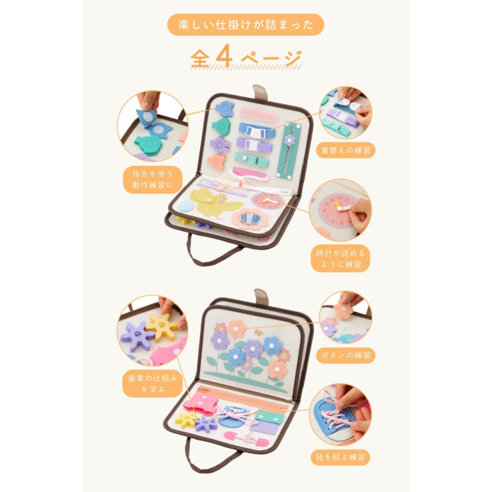 豐富的互動設計:包含多種機關,如扣子、拉鍊、魔鬼氈等,讓孩子動手操作,增加趣味性。