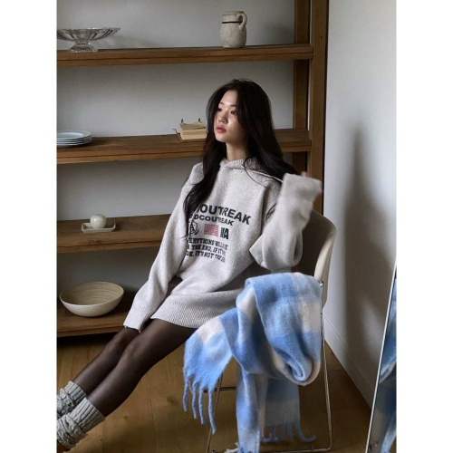 Twins 🇰🇷 韓國代購 東大門 正韓 羊毛字母印花連帽長版上衣