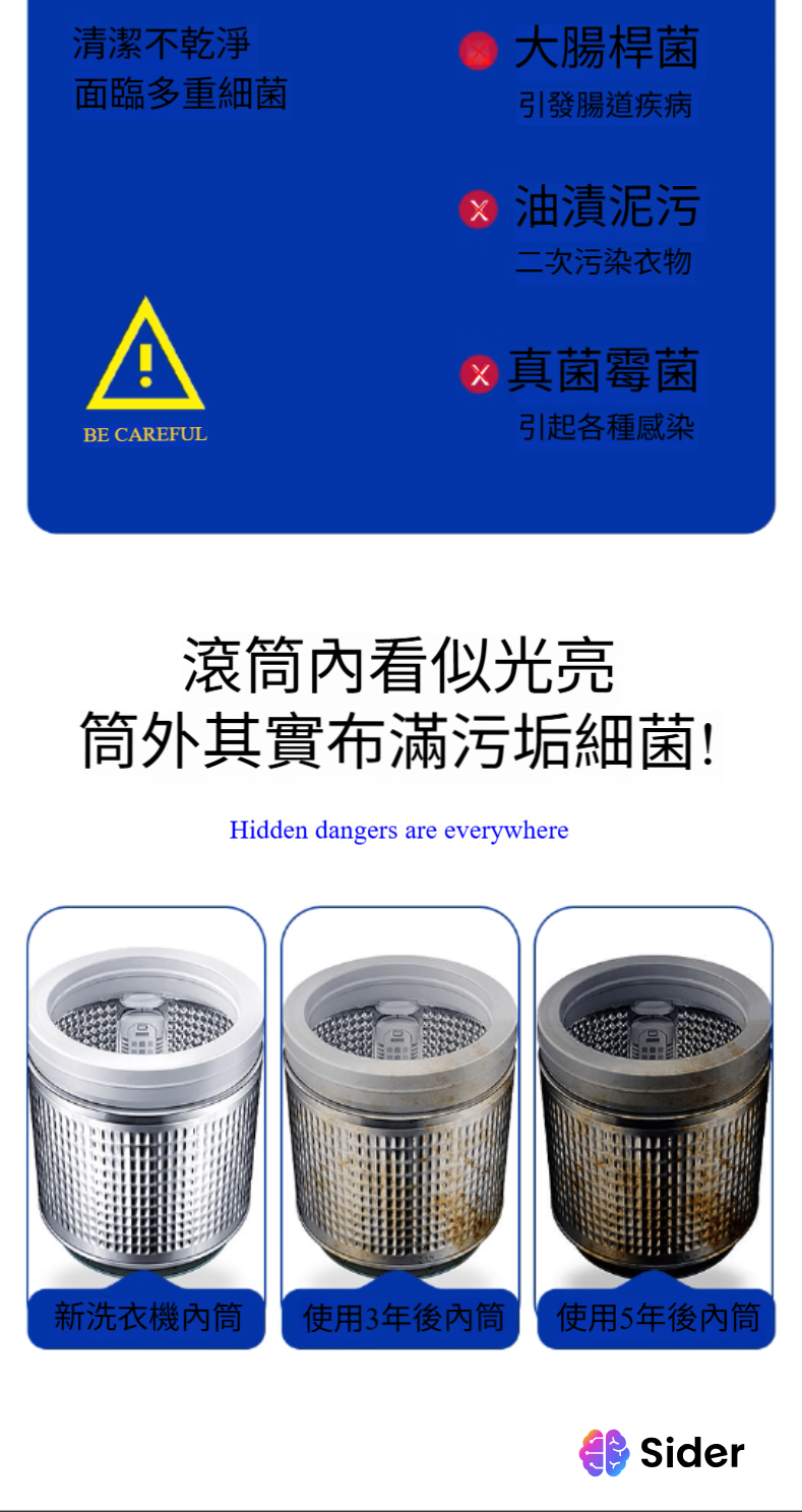 ●可去除洗衣機槽入面的異味和細菌