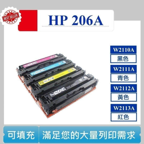 【優惠價】 HP 206A 可填充碳粉匣1組4支【不帶晶片】