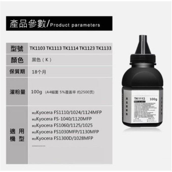 內容 : Kyocera TK-1114 / TK-1124 / TK-7209 /TK-7109 / TK-164 填充用相容碳粉1瓶