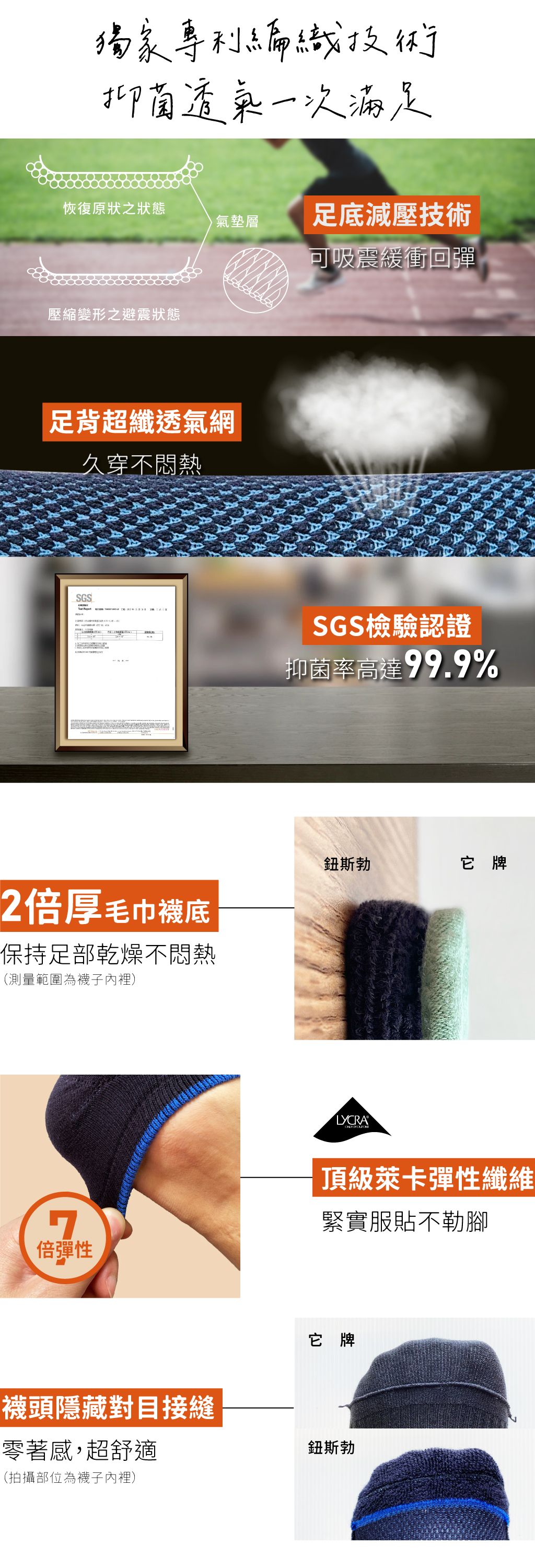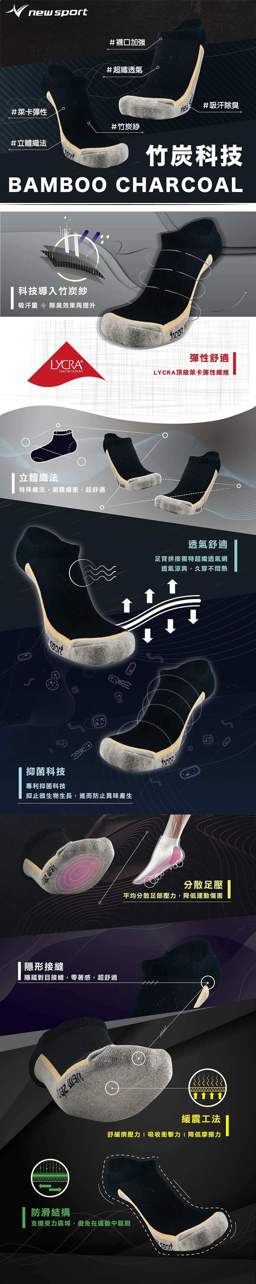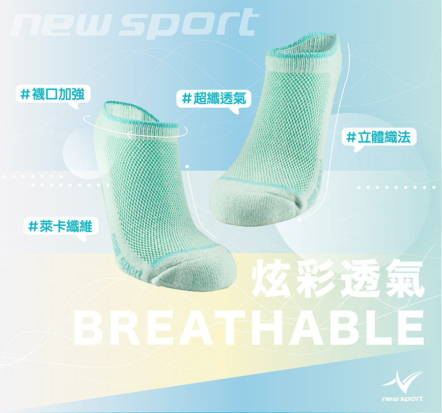#炫彩透氣 #襪口加強 #萊卡彈性 #超纖透氣 #立體織法