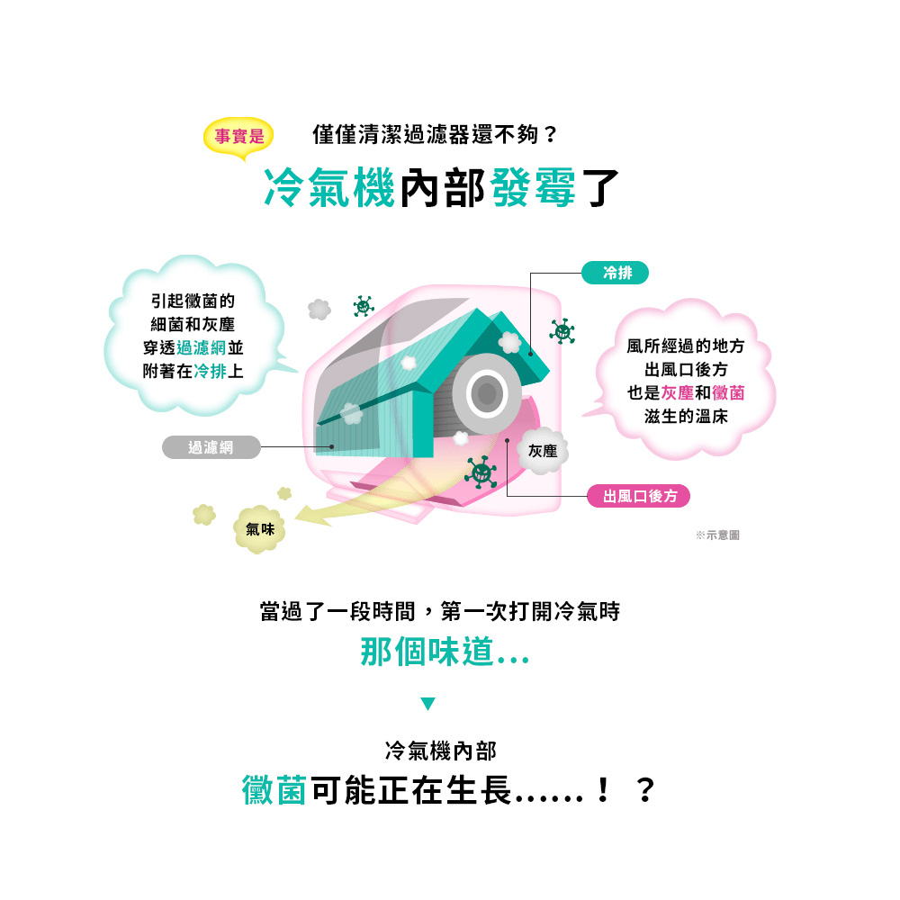 *本產品僅能使用在分離式冷氣機、窗型冷氣機(必須有排水管設計之機型),一台冷氣用量約為一罐冷氣清潔劑。
