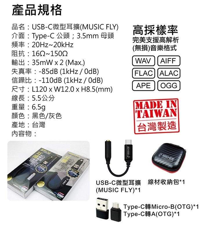 品名/型號: USB-C微型耳擴(MUSIC FLY)