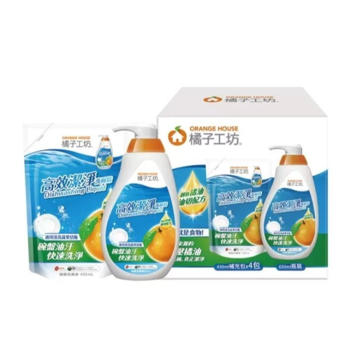 橘子工坊 高效潔淨洗碗精 650毫升 + 補充包 430毫升 X 4入
