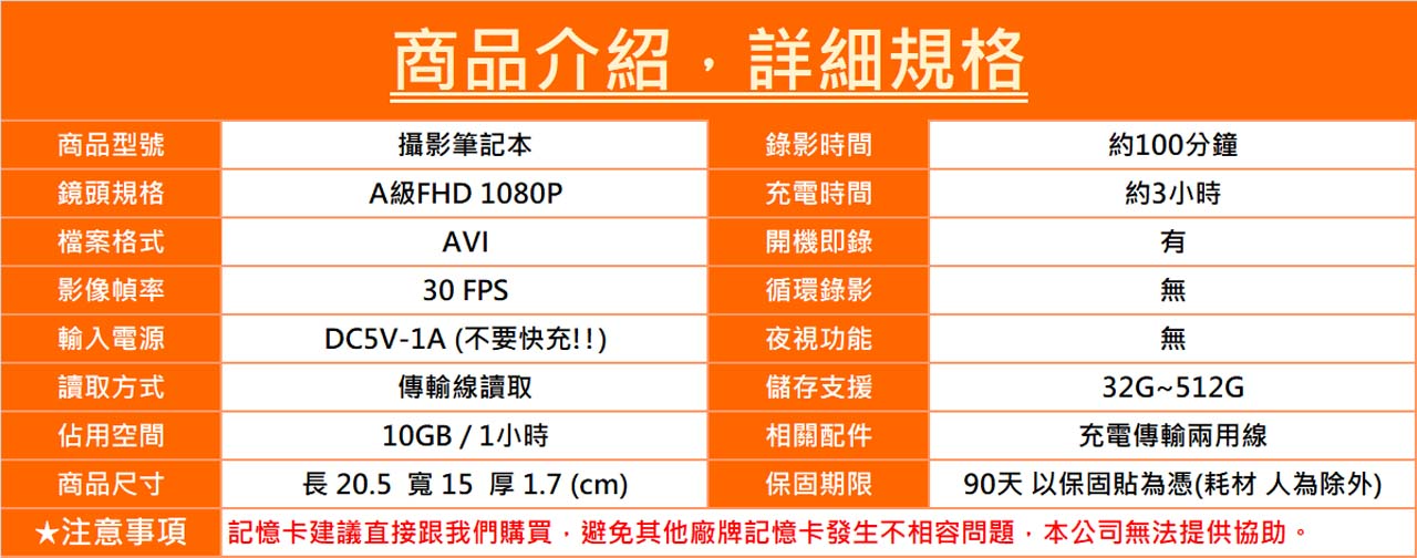 錄影筆記本 連續錄影100分鐘 無孔攝影 1080P 密錄器 針孔錄影機 微型攝影機 秘錄器(寶力數位華夏店)