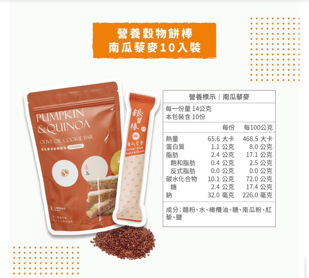 沐尼 X 林銀杏 營養穀物餅棒/南瓜藜麥10入裝(14gx10入)/線上獨家搶先優惠價
