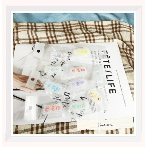 馬卡龍文字款 !!!!!商品詳細如下,請看清楚再下單!!!!! ✦ 若照片有模糊處或想看背面等,皆可聊聊詢問(,,・ω・,,) ✦ 只要沒劃掉就是還有貨喔!但下標前還是麻煩請先詢問一下,以免有劃掉前正在與他人交易中的情形! ✦ 下標時,請在備註的地方標示要哪一款,或是聊聊告知喔! —- 名牌有很多其他款式 可以於賣場搜尋名牌,參考其他賣場 其他賣場款式: Logo 手繪字 馬卡龍人像 馬卡龍文字 馬卡龍Q版 飯繪Q版 黑色名牌 圖片名牌 應援名字 Cp款 圈圈飯繪 月亮飯繪