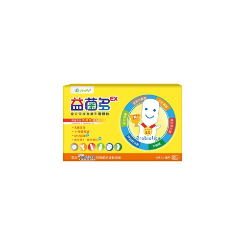 -「億菌多」加強版更名為「益菌多EX」 - 熱銷12年的經典益生菌再升級 EX加強版 - 升級添加-DHA藻油 幫助兒童學習力 - 升級添加-維生素A 幫助3C保健 - 嚴選優質好菌、兒童益生菌首選 - 含益生質半乳寡糖,提供好菌營養 - β葡聚糖+乳鐵蛋白,打造好體質 - 綜合酵素,幫助消化與維持健康 - 維生素B、維生素C,增強體力 - 飯前吃助食欲,飯後吃助消化 產品名稱:JOYHUI 健康進行式益菌多EX升級版 成分:乳糖、玉米澱粉、蔗糖、果寡醣、香料(含酒精、水、香料、醋酸、焦糖色素、脂肪酸 甘油酯、丙二醇、甘油、辛烯基丁二酸鈉澱粉、偏磷酸鈉、多磷酸鈉、焦磷酸鈉)、維生素C、檸檬酸、DL-蘋果酸、乳酸鈣、複合乳酸菌(含乳酸菌、麥芽糊精)、木寡醣、鳳梨酵素(含麥芽糊精、鳳梨酵素)、聚阿拉伯半乳糖(松木多醣)、難消化性麥芽糊精、芽孢乳酸菌(含麥芽糊精、芽孢乳酸菌Bacillus coagulans)、菊糖(菊苣纖維)、綜合酵素[含麥芽糊精、澱粉分解酵素、植酸酵素、葡萄糖澱粉酵素RO、複合酵素(含脂肪分解酵素、蛋白質分解酵素、澱粉分解酵素、麥芽糊精)、中性蛋白質分解酵素、鳳梨酵素、蛋白質分解酵素4.5、轉化酵素、蛋白質分解酵素3.0、半纖維素分解酵素、果膠酵素、α-半乳糖苷酶、蛋白質分解酵素AM、脂肪分解酵素、胜肽分解酵素、乳糖分解酵素、蛋白質分解酵素6.0、澱粉酵素、纖維素分解酵素AN]、β-胡蘿蔔素[含葡萄糖漿、阿拉伯膠、中鏈三酸甘油酯、蔗糖、L-抗壞血酸鈉(抗氧化劑)、β-胡蘿蔔素、二氧化矽、生育醇(維生素E)(抗氧化劑)]、啤酒酵母菌(含乳糖、啤酒酵母菌Saccharomyces cerevisiae)、維生素B2、維生素B6、乳鐵蛋白、乳酸菌(含乳酸菌、麥芽糊精)、複合乳酸菌[含乳酸菌、麥芽糊精、寡醣粉(乳糖、果寡醣、半乳寡醣、麥芽糊精)、微結晶狀α-纖維素]、維生素A[含葡萄糖漿、阿拉伯膠、玉米澱粉、維生素A醋酸酯、維生素E(抗氧化劑)]、維生素D3[含辛烯基丁二酸鈉澱粉、蔗糖、L-抗壞血酸鈉(抗氧化劑)、中鏈三酸甘油酯、二氧化矽、生育醇(維生素E)(抗氧化劑)、維生素D3]、海藻萃取物[含葡萄糖漿、DHA藻油、辛烯基丁二酸鈉澱粉、D-甘露醇(甜味劑)、葵花油、抗壞血酸鈉、脂肪酸甘油酯、多磷酸鈉、磷酸鈣、香料、混合濃縮生育醇(抗氧化劑)、(向日葵)卵磷脂、L-抗壞血酸棕櫚酸酯(抗氧化劑)]、半乳寡醣、β-聚葡萄糖。 包裝規格:3公克/包;30包/盒 劑型:粉末 有效日期:標示於包裝上(西元/月/日) 保存期限:二年(保存期限係指未開封狀態且正常條件下保存) 產地:台灣 食品業者登錄字號:Q-125053313-00000-6 產品責任險:0504字第21AML0002870 國際條碼:4712839981103
