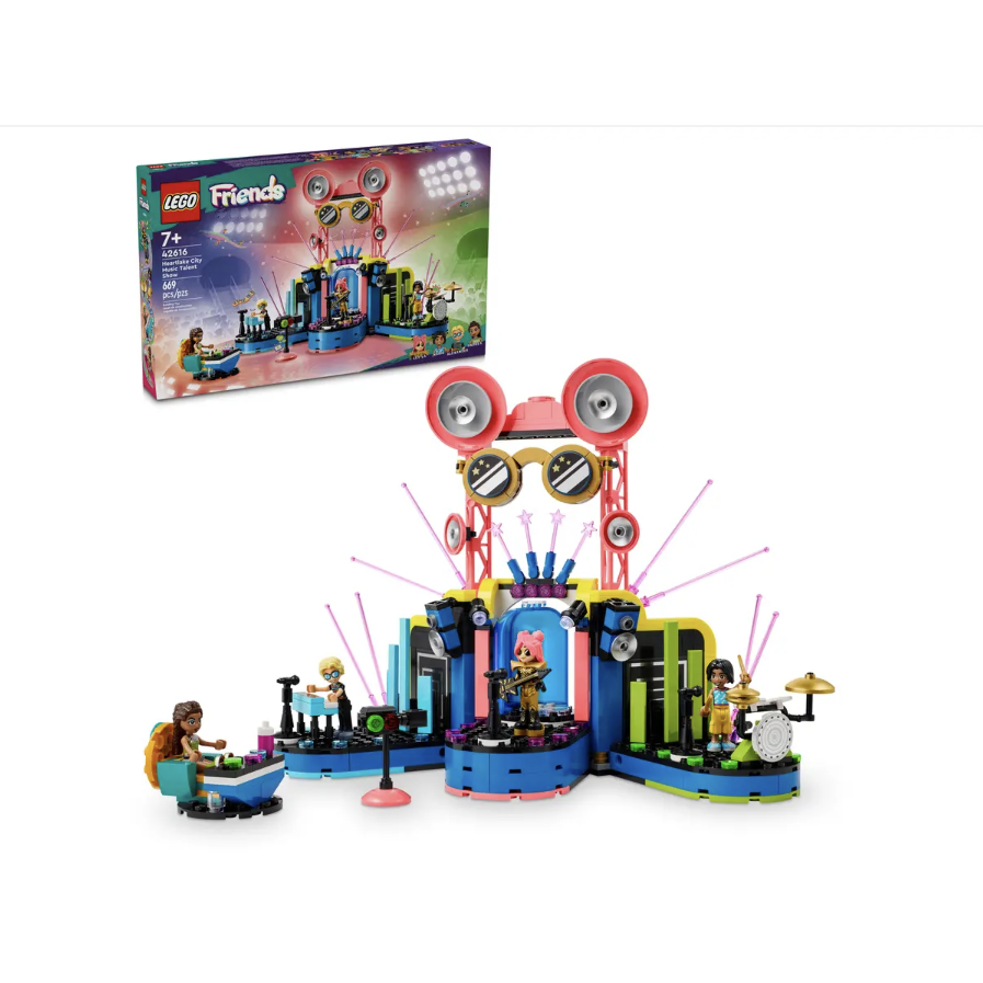 LEGO® Friends 心湖城音樂達人秀(42616)玩具盒組適合 7 歲以上女生、男生與孩子,喜愛選秀比賽的孩子可用這款盒組舉辦演唱會。此盒組內有包含後台區的玩具音樂舞台、評審桌、4 個樂高娃娃和多種配件。