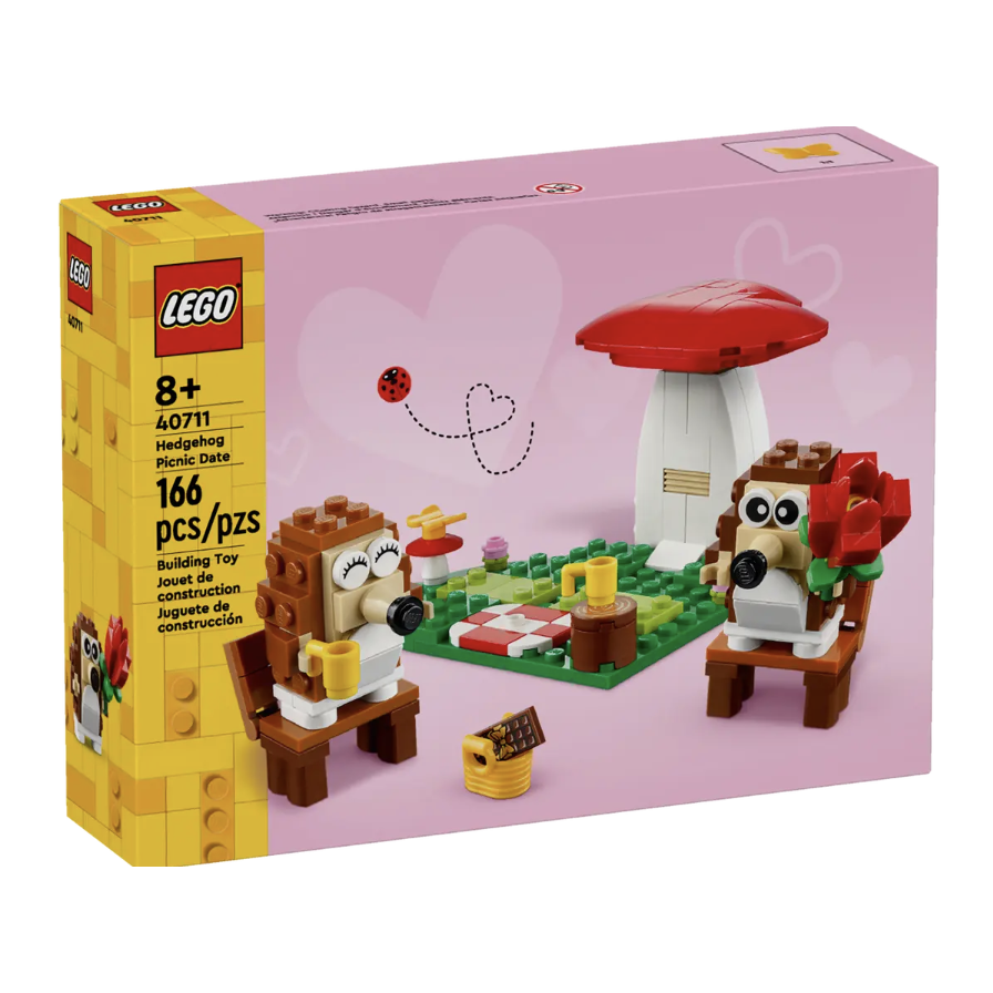 用這款可愛又有豐富趣味特色的樂高® 刺蝟野餐約會(40711)動物玩具拼砌盒組歡慶任何特別的日子。8 歲以上男孩與女孩可拼砌和展示此盒組並上演故事,內有 2 個刺蝟模型,坐在心形底座上的心形蘑菇下