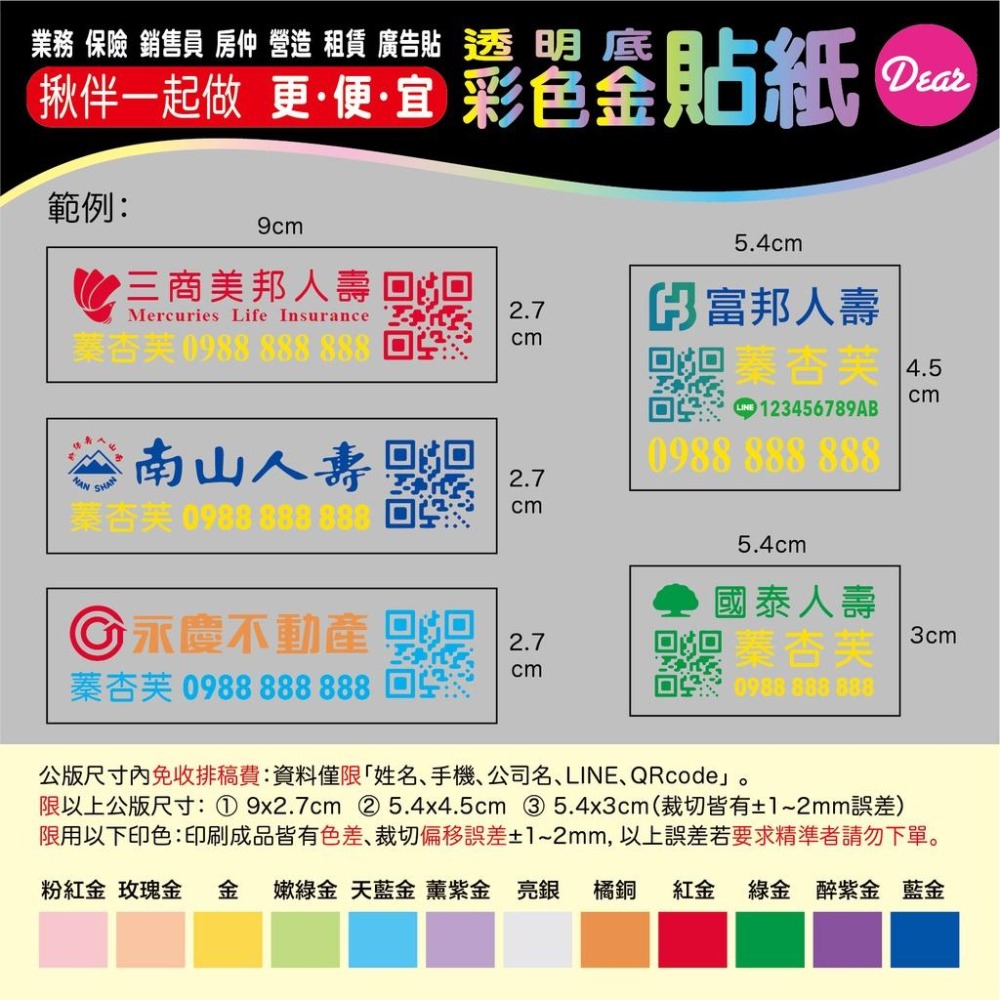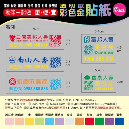 客製-透明底・彩色金・貼紙/業務 保險 銷售員 房仲 營造 租賃 廣告貼 禮品貼 贈品貼紙