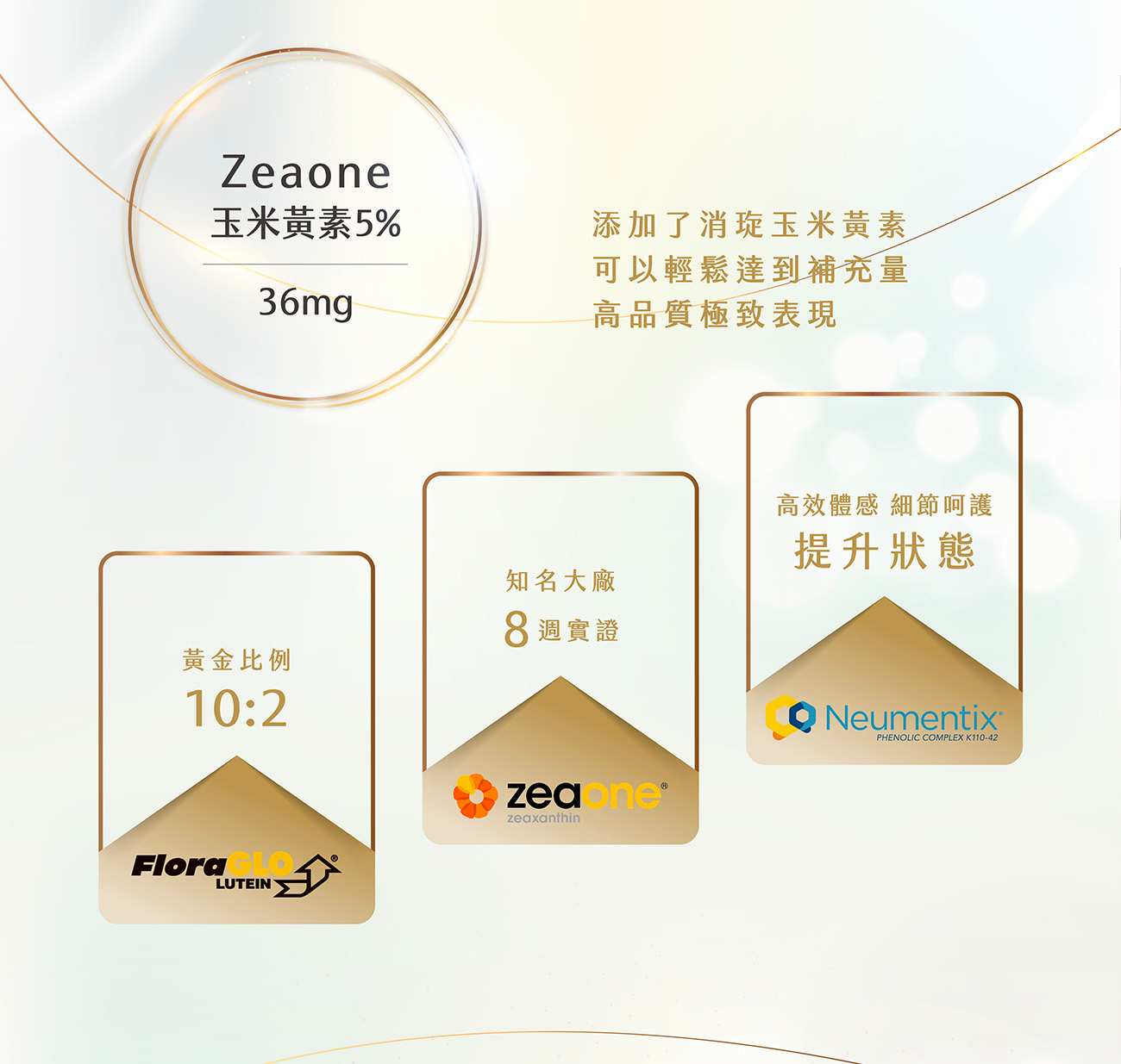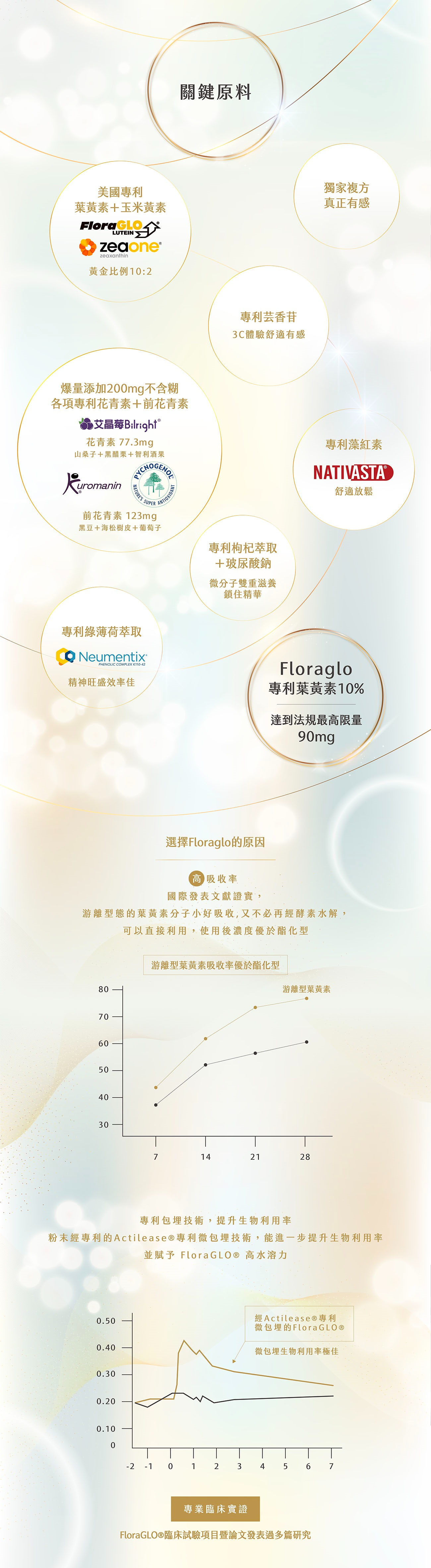Neuteinzea® 建明三晶亮是以市售火紅的 FloraGLo®游離型葉黃素 ( Lutein )、