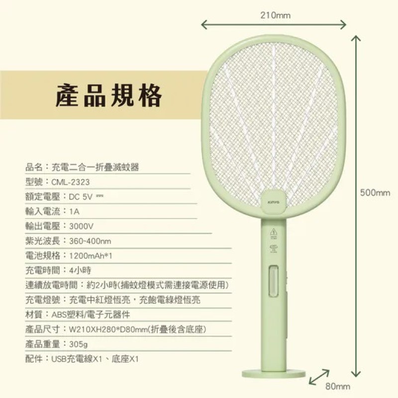 連續放電時間:約2小時(捕蚊燈模式需連接電源使用)