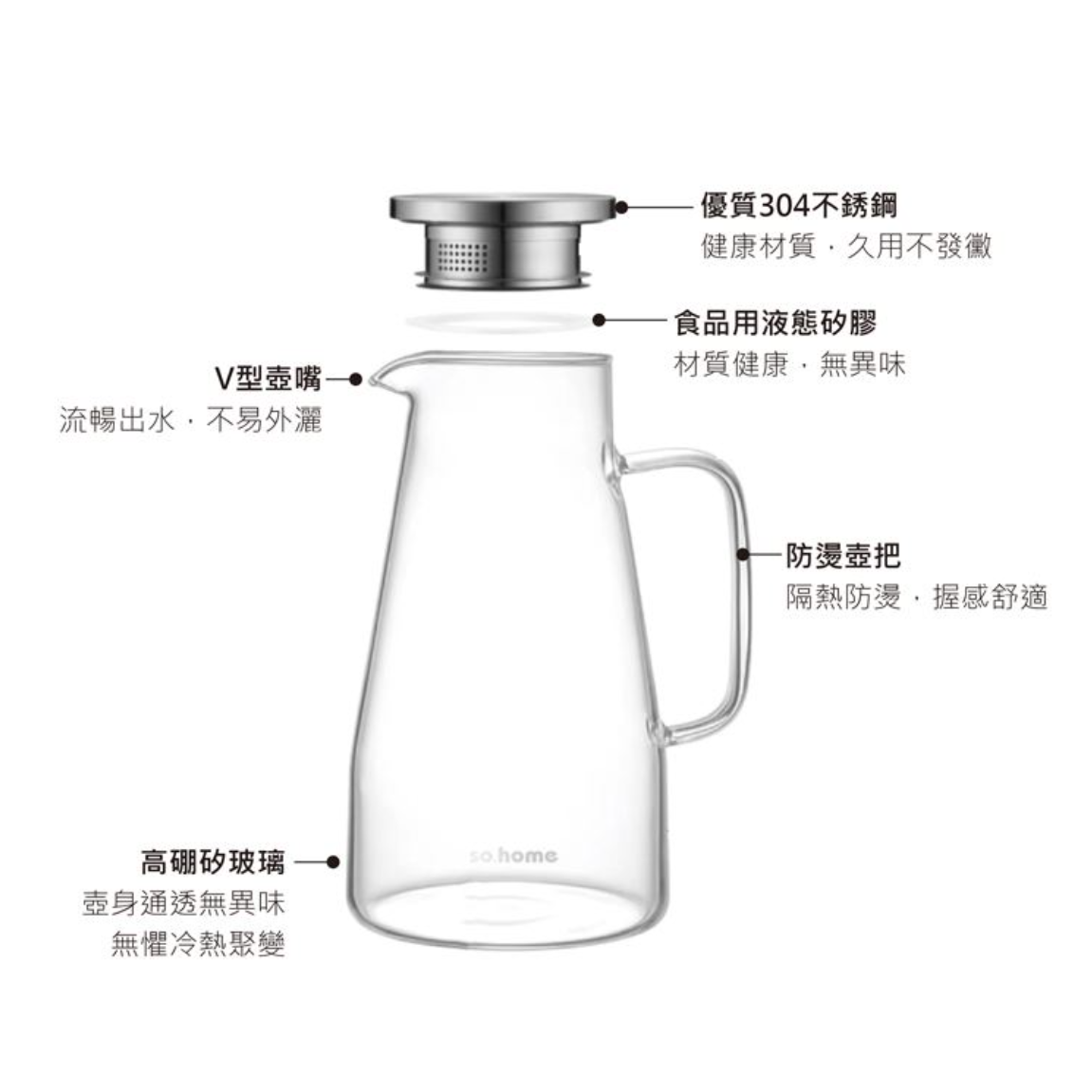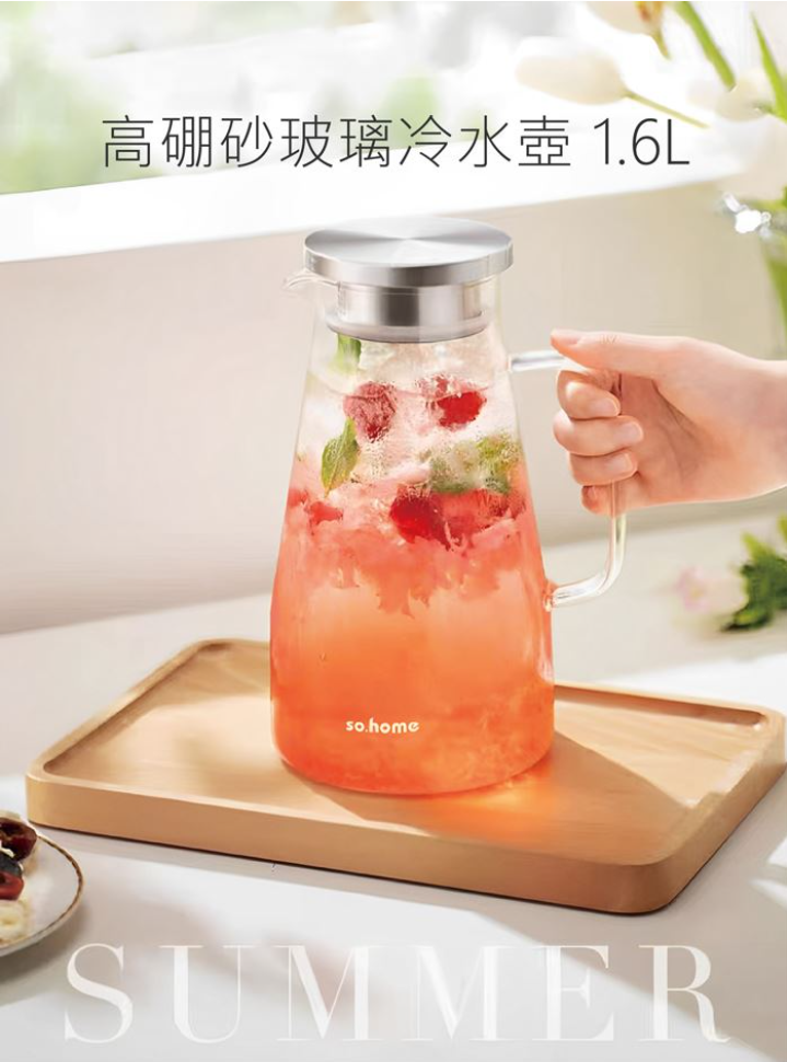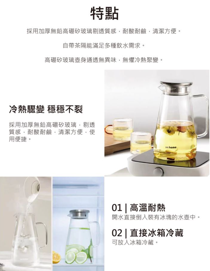 【內容物】so.home高硼矽玻璃冷水壺 1600ML