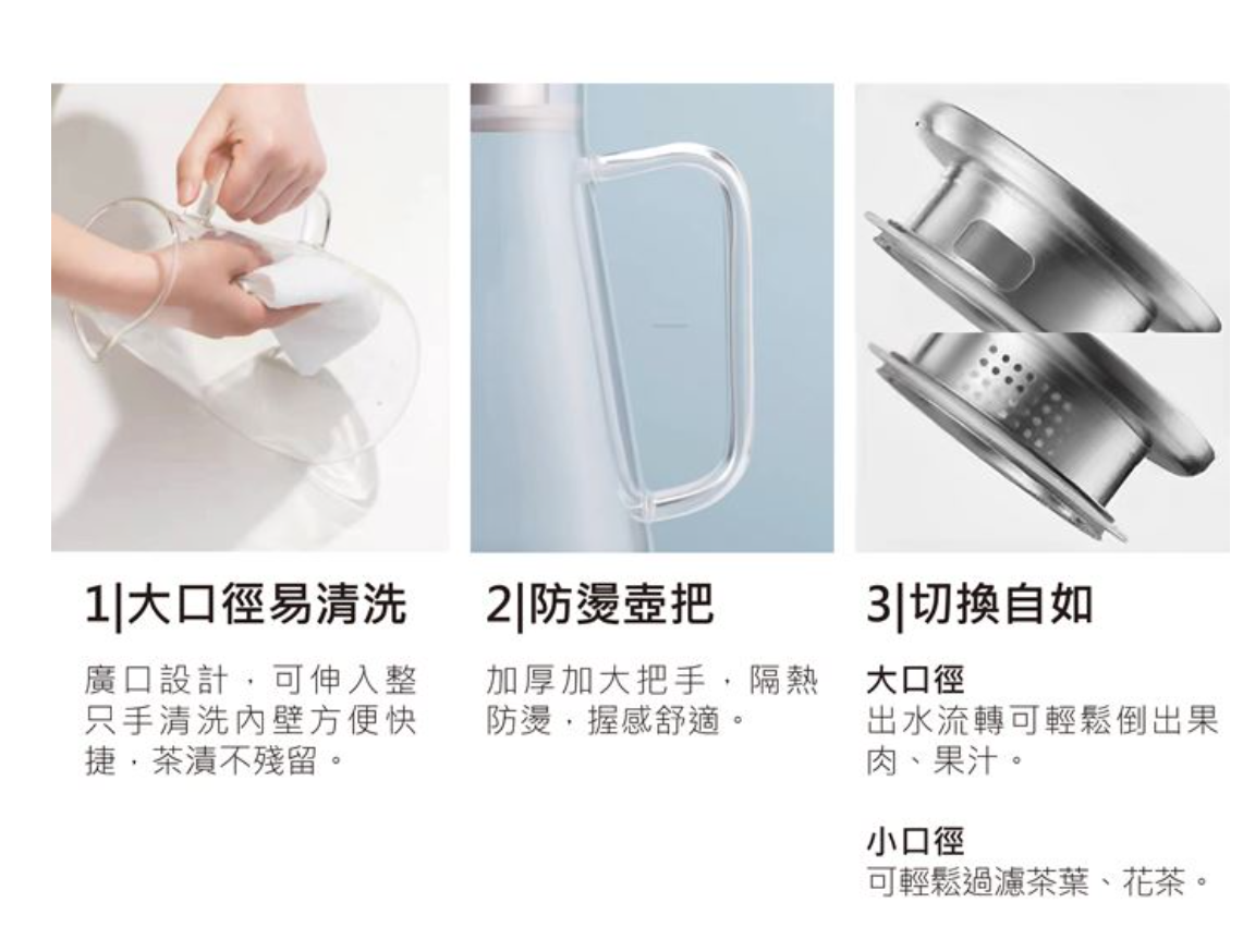 1. 壺體採用高硼矽(硅)玻璃材質製成,可直火加熱使用,經實測可耐瞬間溫差180°C,使用安全性高。比傳統玻璃更安全 即使溫度忽高忽低,瓶身穩穩不易裂