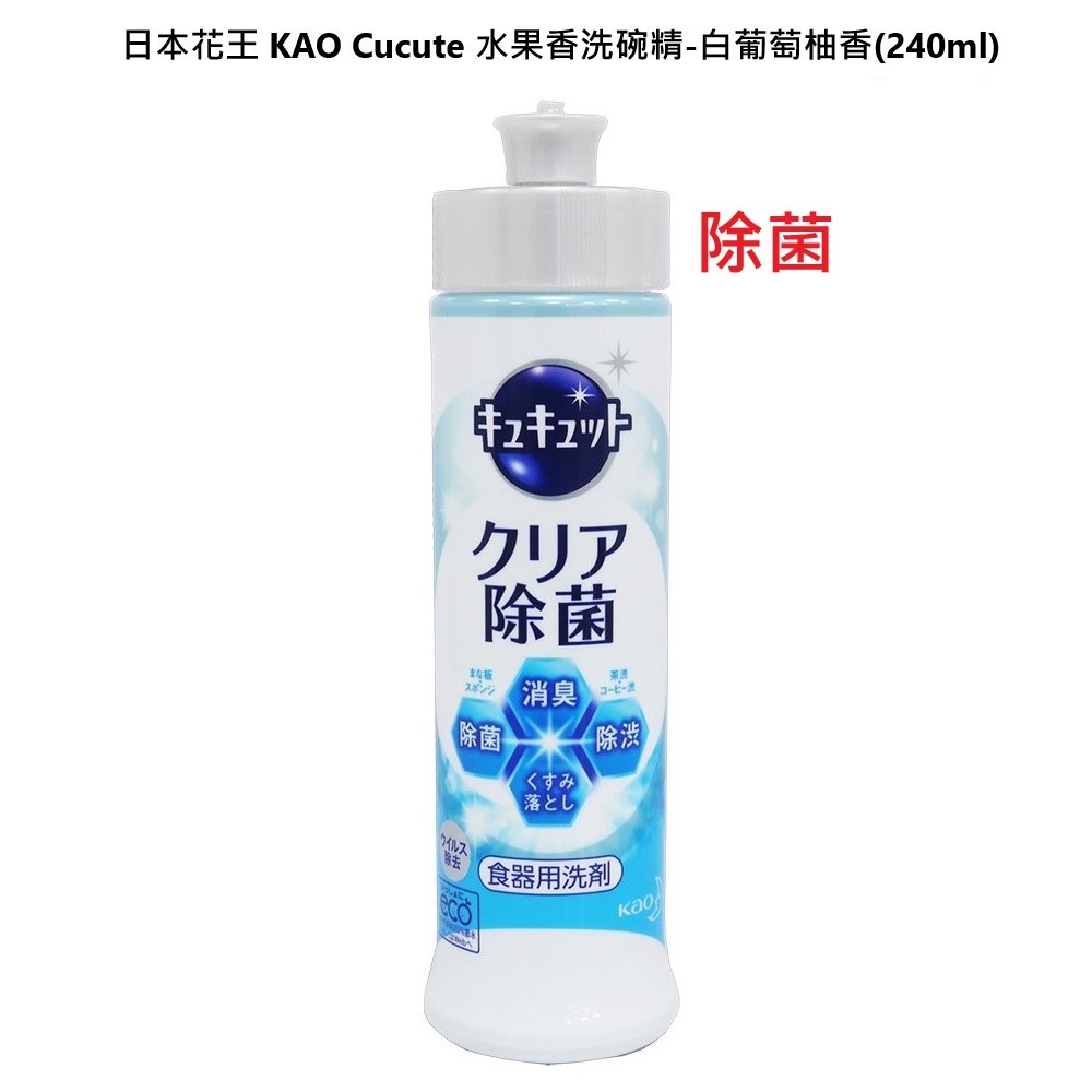 【日本花王 KAO Cucute】日本製樣 潔淨洗碗精-綠茶香 水果香-洗碗精 240ML 抗菌 除油汙 廚房清潔劑