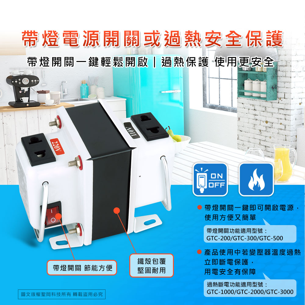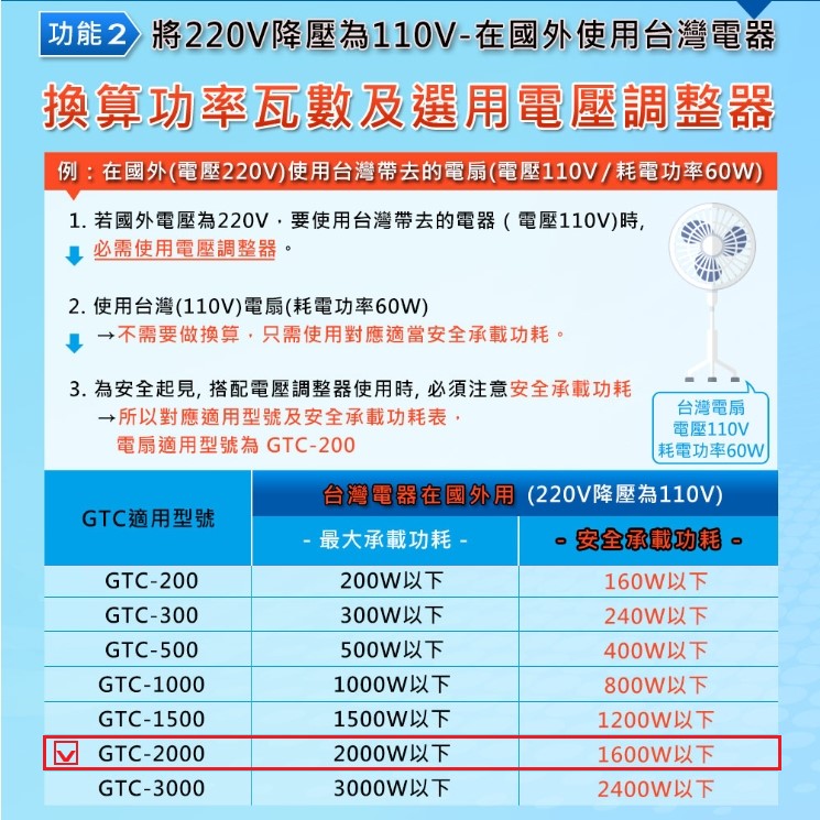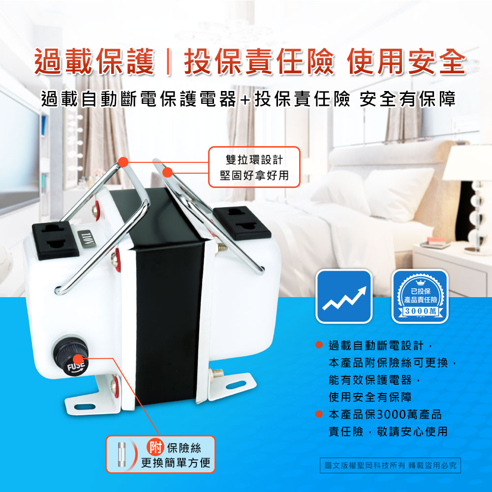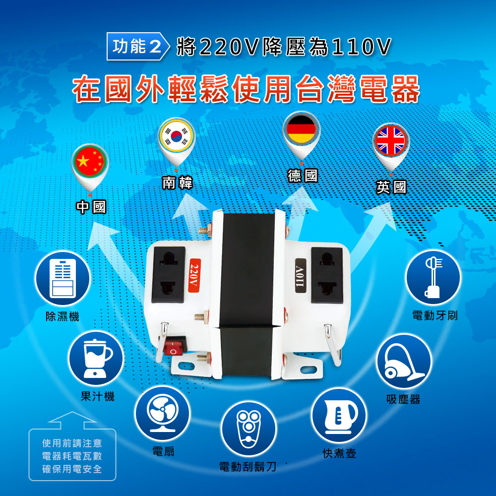 ● 台灣電器在國外使用 (220V降壓為110V) 最大承載2000W 安全承載 1600W