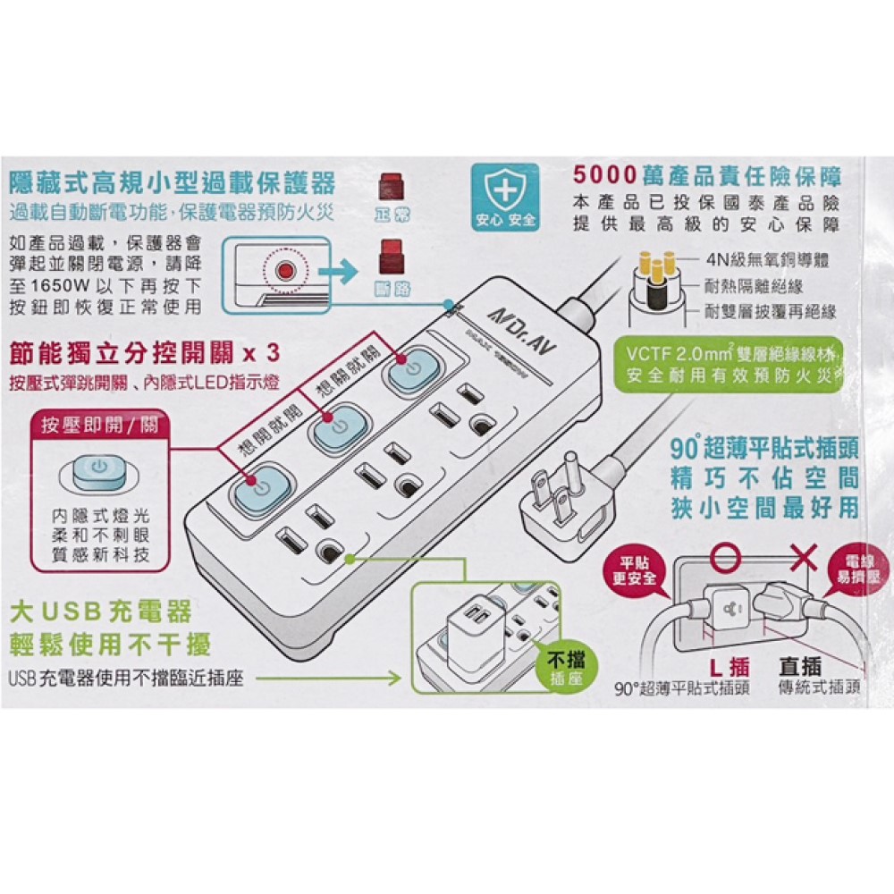 TX-500-6提供三個插座,支持多設備同時使用,適合各種家電和電子產品,讓用戶隨時隨地享受便利的電力供應。