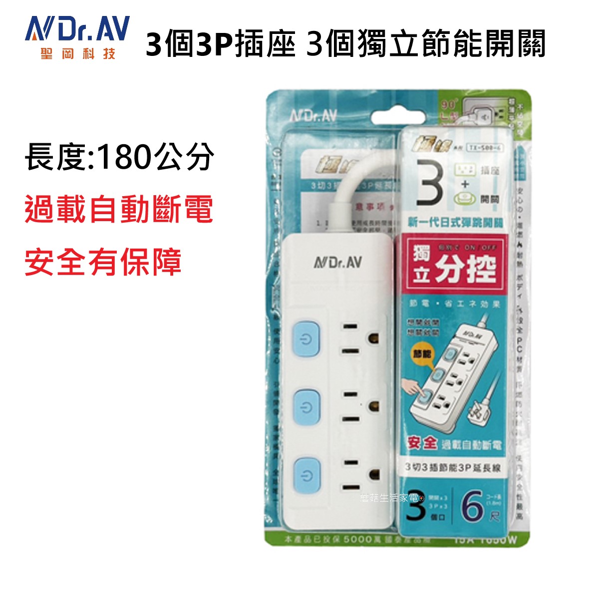 【聖岡科技】3P節能延長線 TX-500-6 3切3插 6尺