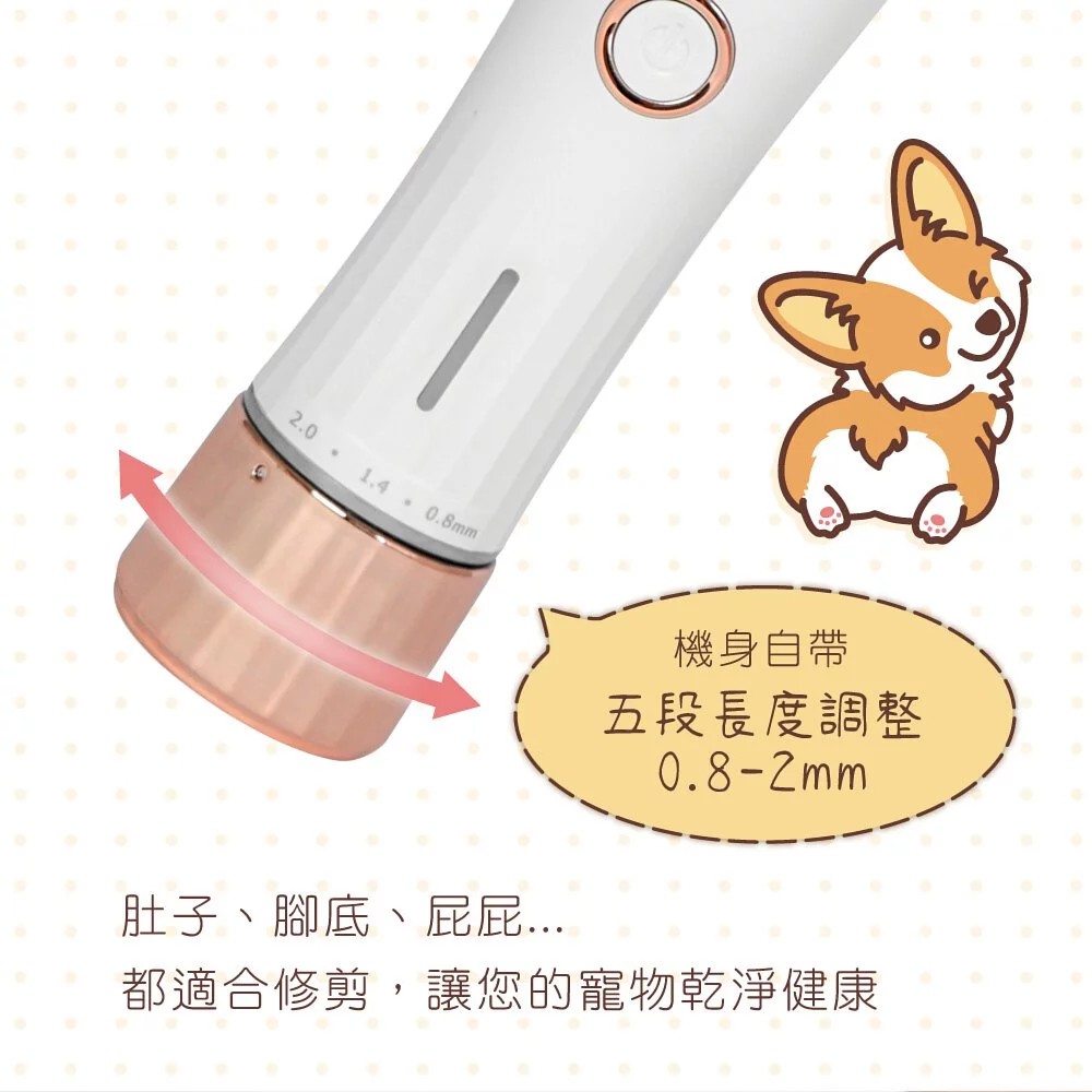 機身自帶五段細部長度調整(0.8-2mm),適合修剪肚子、腳底、屁屁乾淨健康。